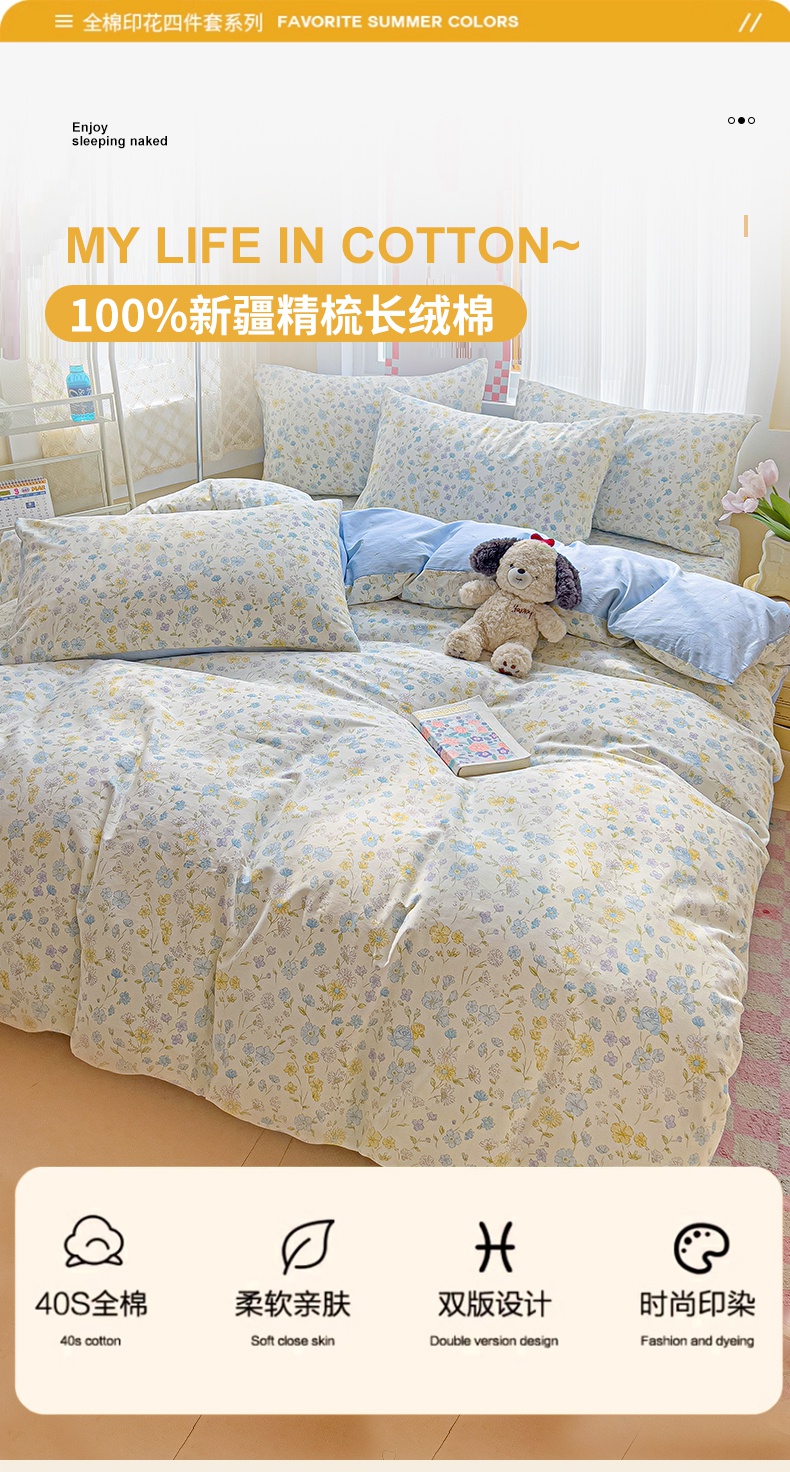 商品名称:棉生活家纺 2025新款ins全棉小清新系列四件套 向阳花开