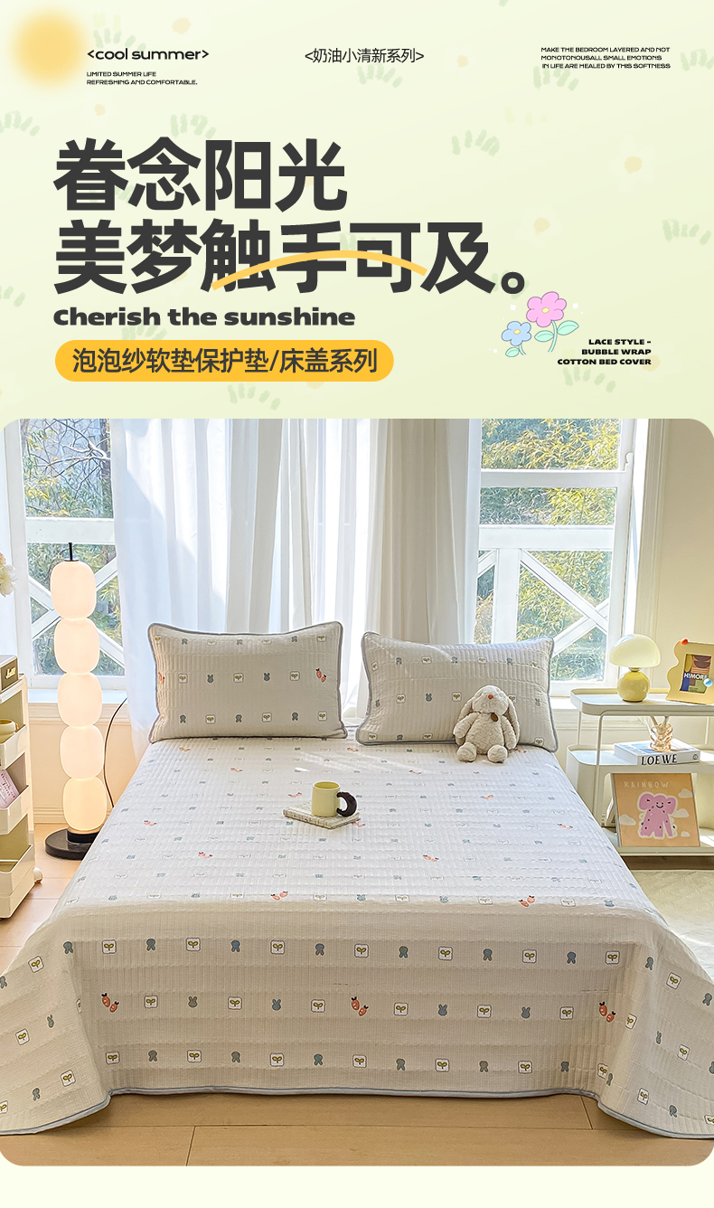 当前位置: 91家纺网 > 商品网购 > 床上用品 > 床盖 > 美克家居 2025新款泡泡纱软垫床护垫床褥子床垫小清新印花床盖 斑马狗床席款