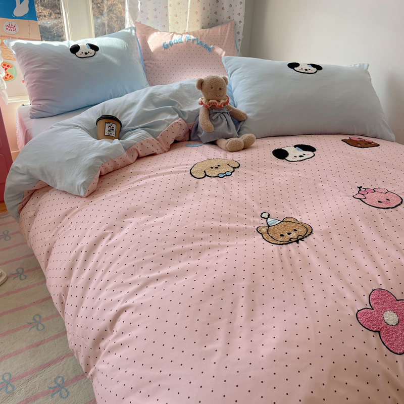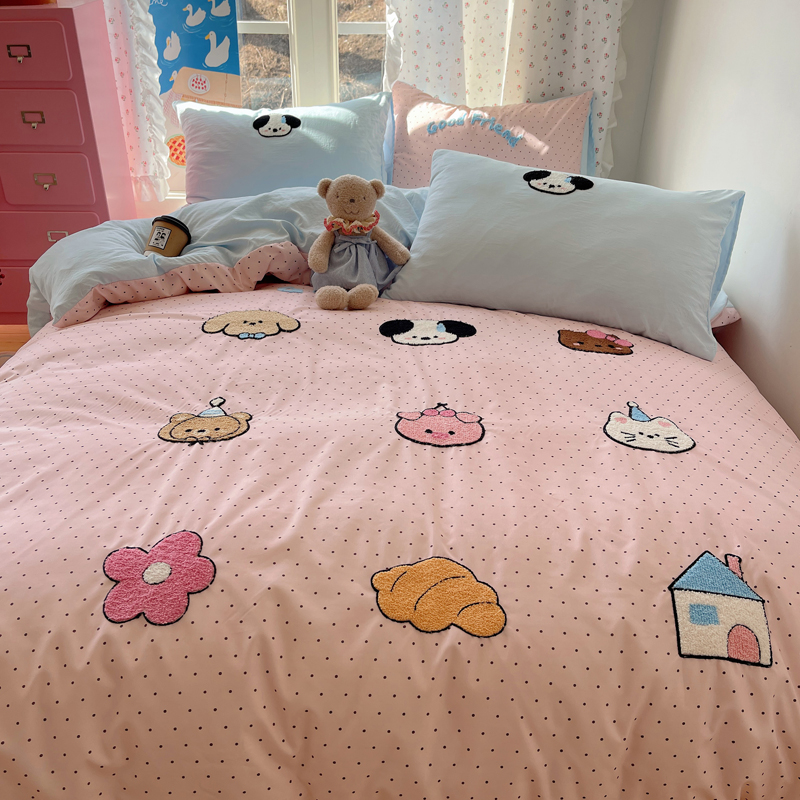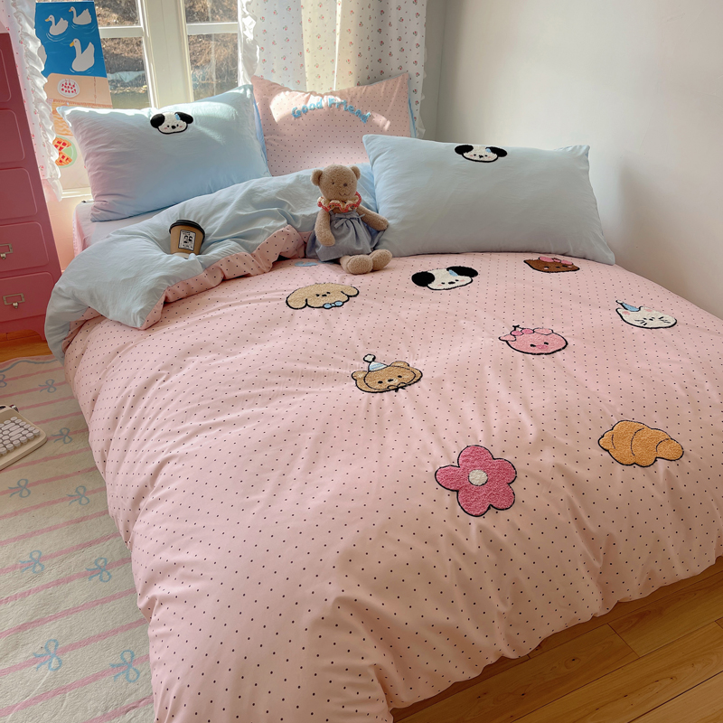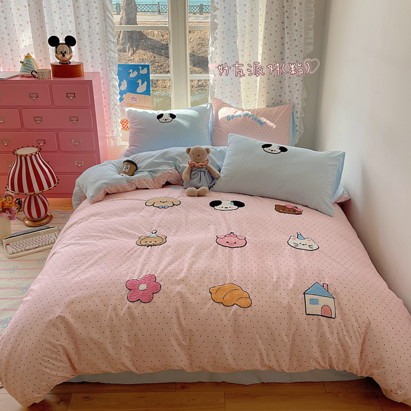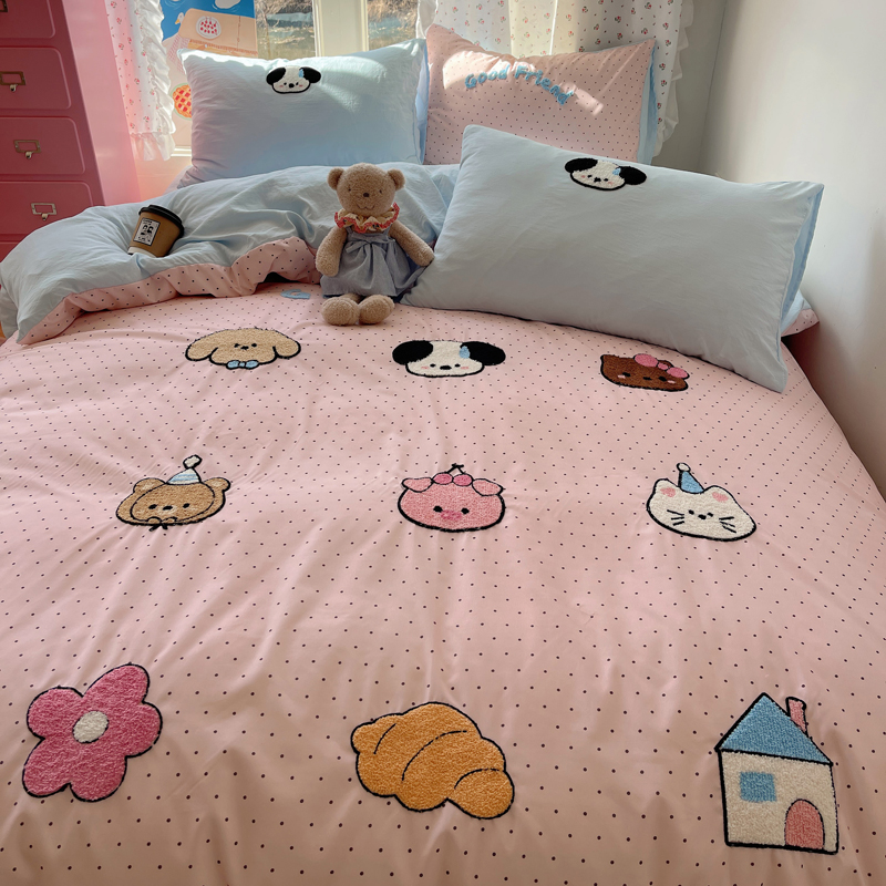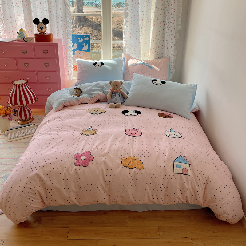 (总)顾里家纺 2024新款ins韩风甜感刺绣标牛奶绒四件套,蛋糕狗狗,烛台小熊,ins可颂,ins苹果,ins沙发狗,ins小象,ins樱桃猫