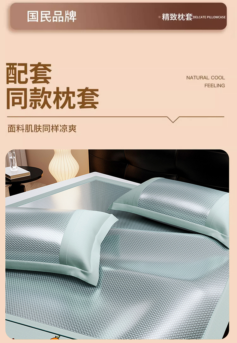 商品名称:(总)席佬大 2025新款A级抗菌提花双面绣花床席床笠款冰藤席