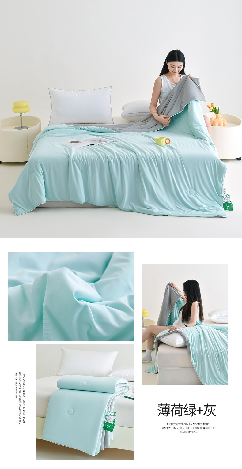 (总)圣尔雅家纺 2025新款凉感丝夏被,艾绿色,丁香紫,粉色,米黄,浅兰,紫苑