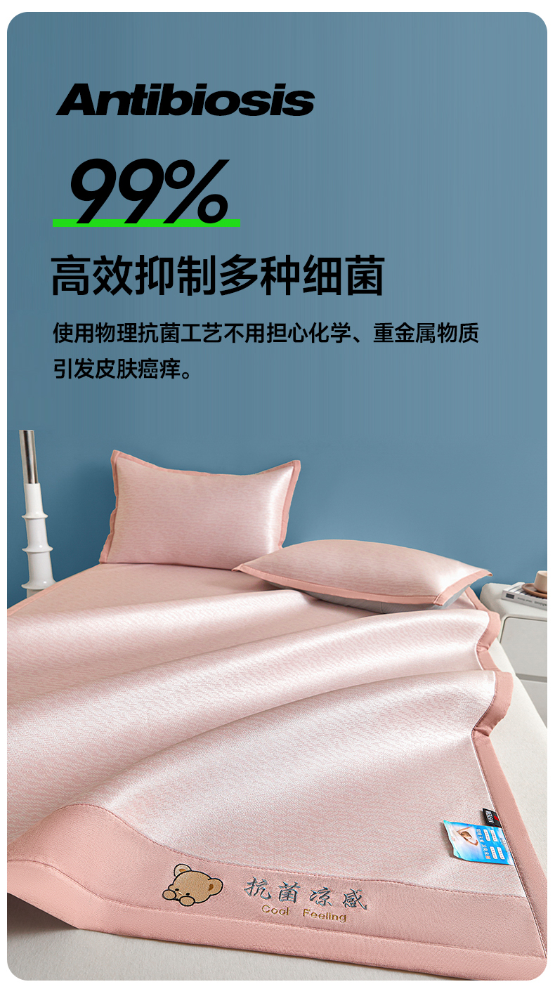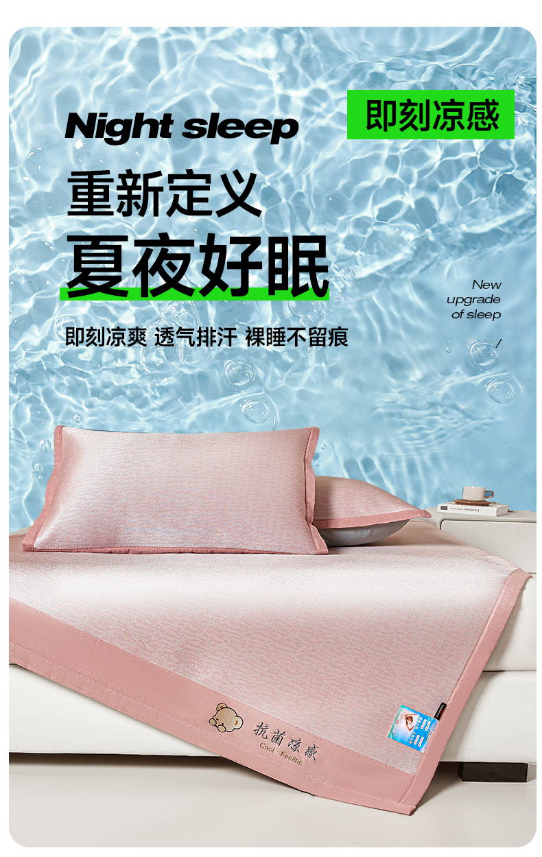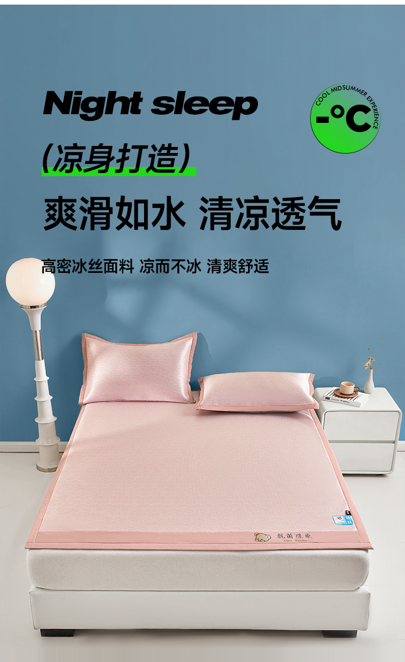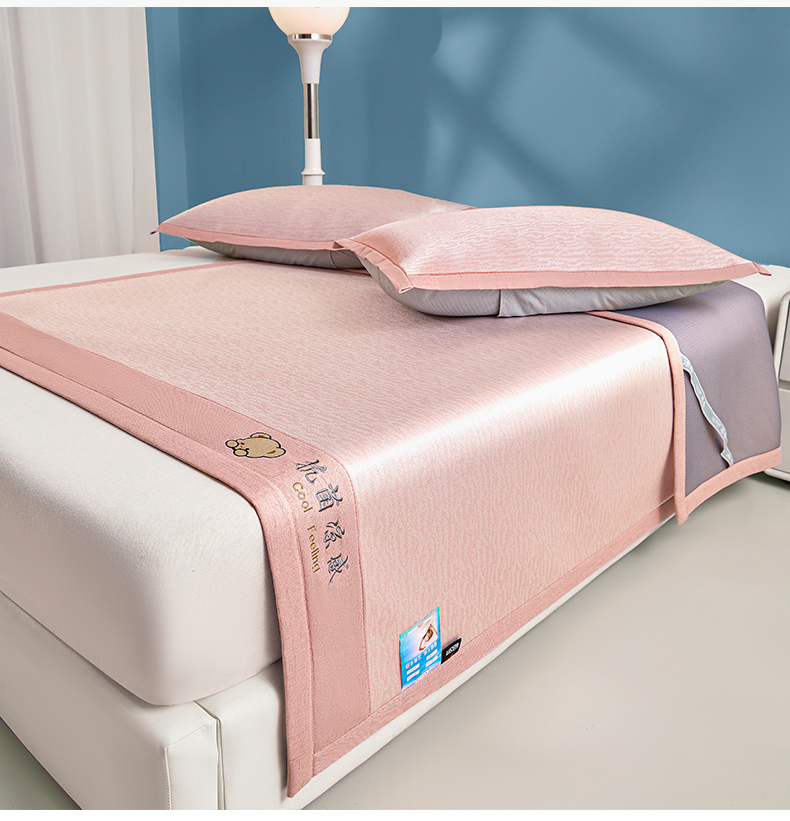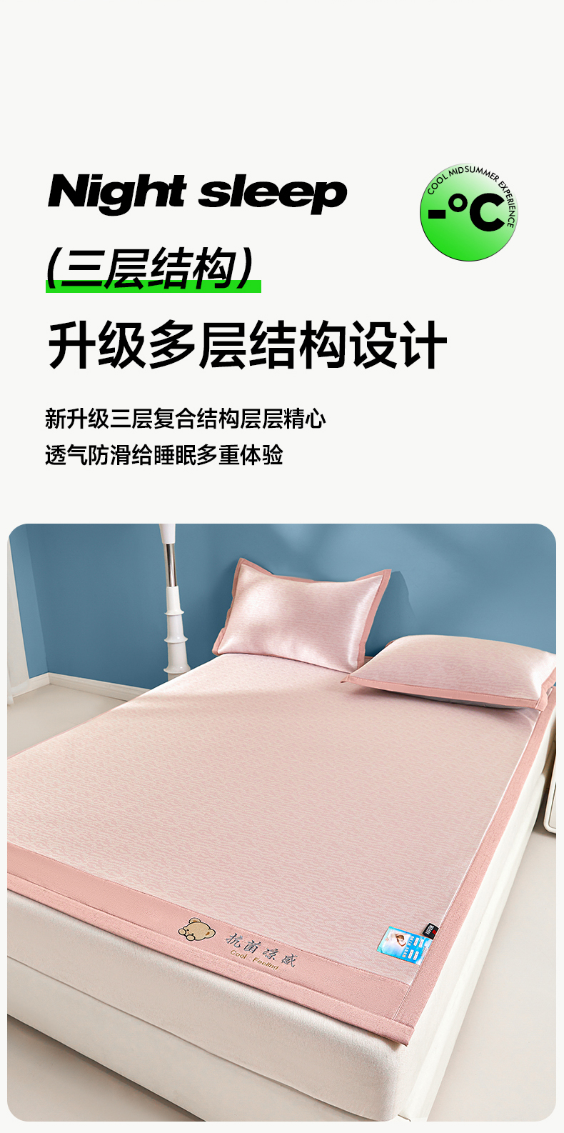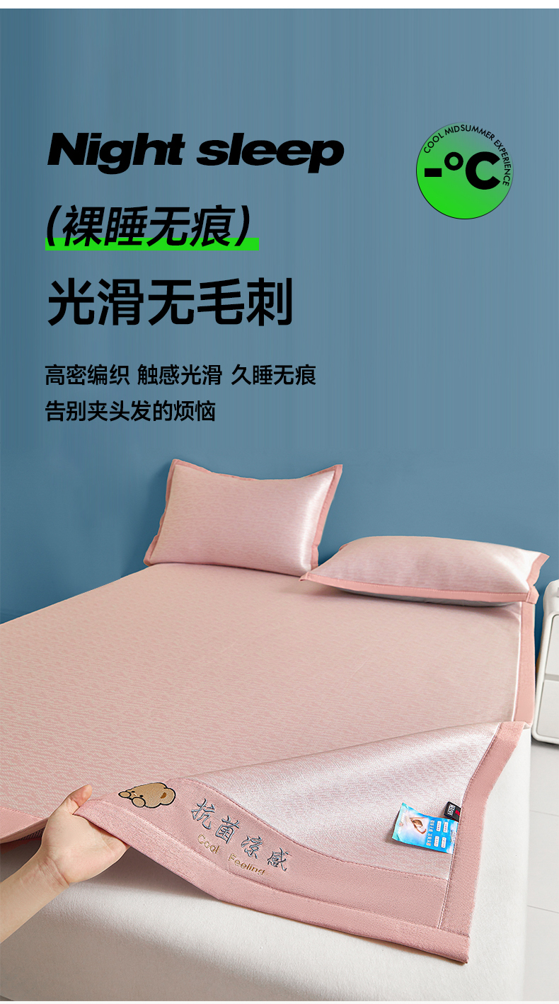 商品名称:摩妮卡2025新款A类抗菌冰丝凉席席子三件套--床席款 小冰块-少女粉