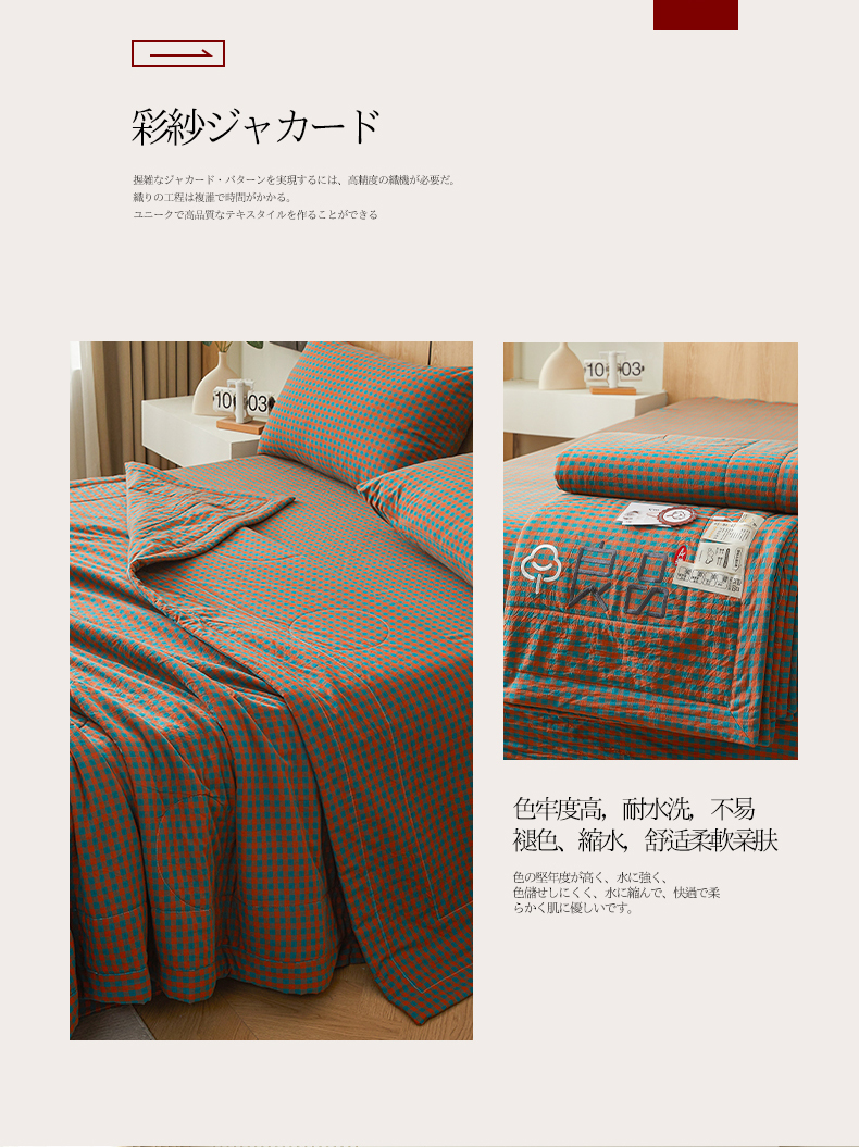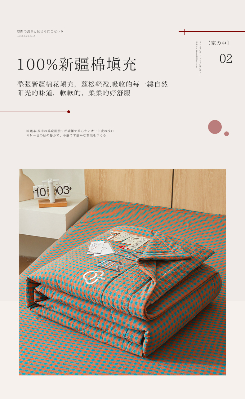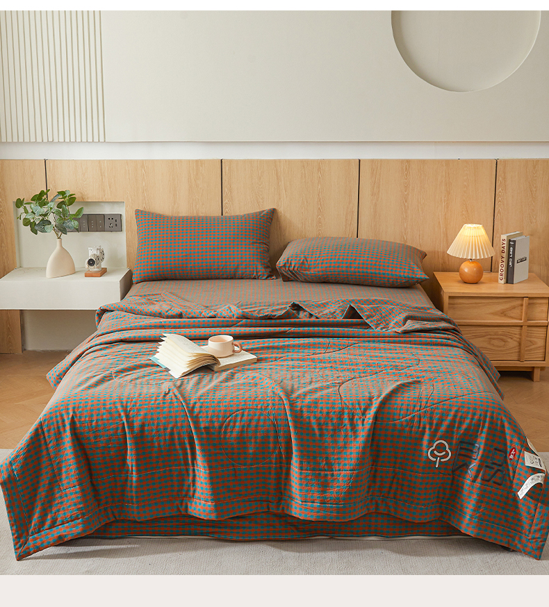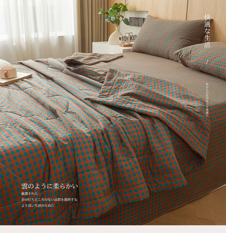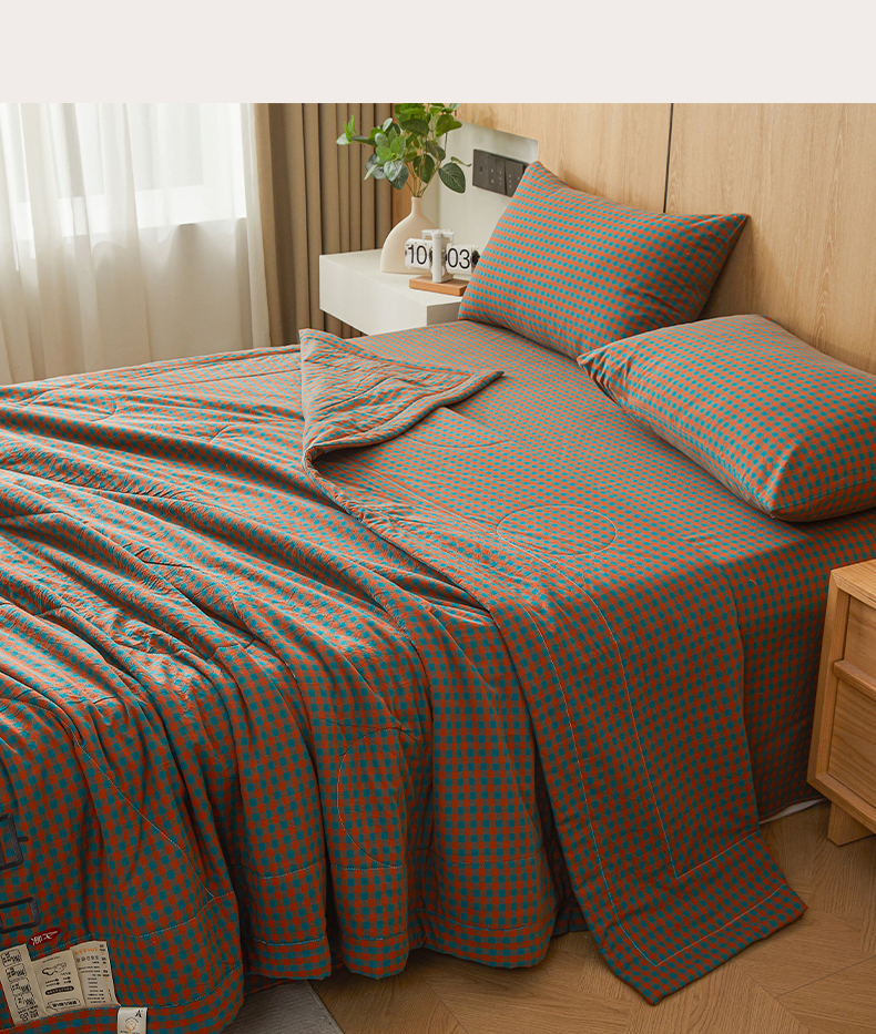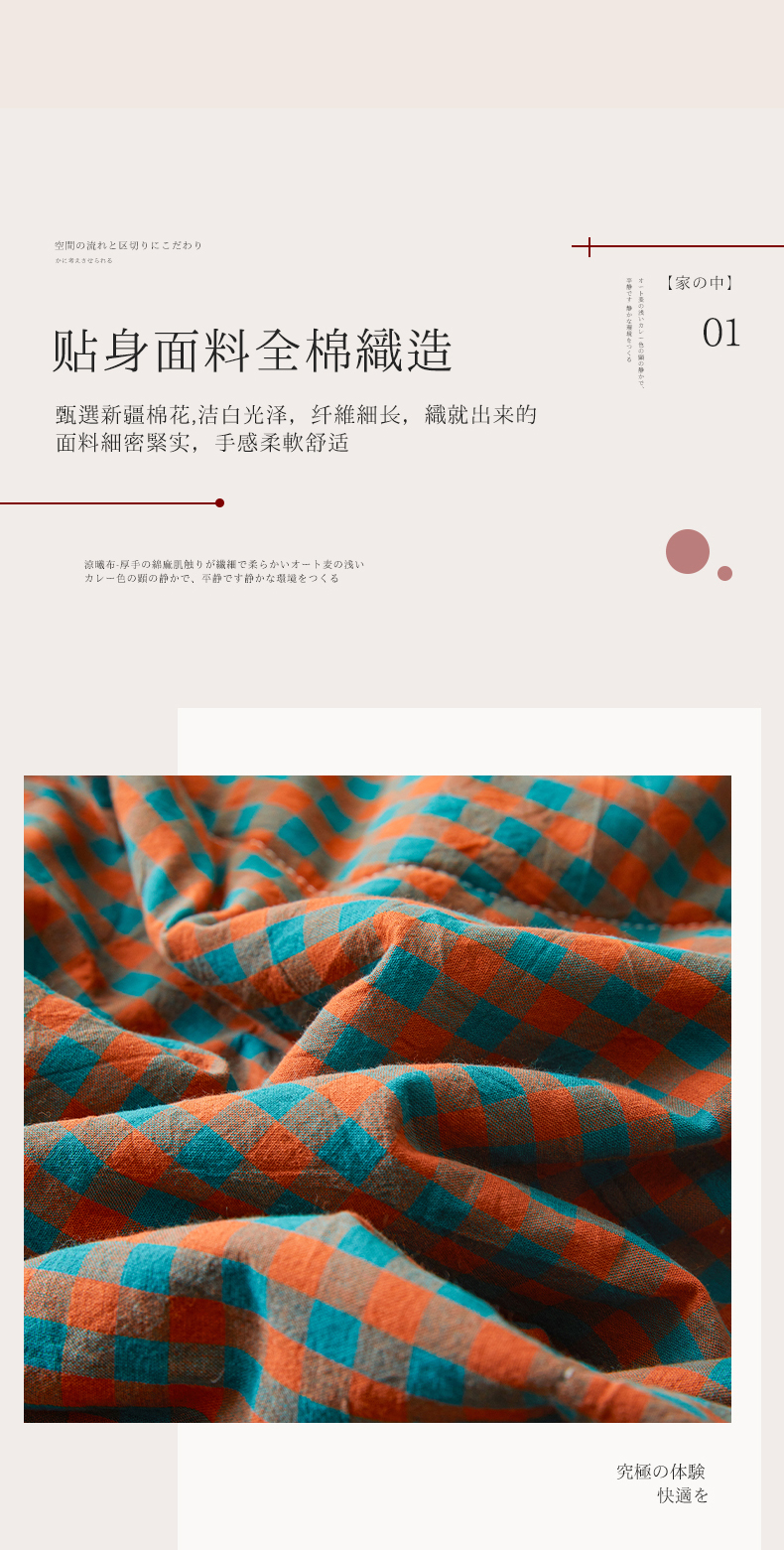 当前位置: 91家纺网 > 商品网购 > 床品套件 > 四件套 > 夏被四件套 > 悦织语 2025新款全棉水洗色织新疆棉100%棉花刺绣款无印风夏被四件套 橘蓝咖格
