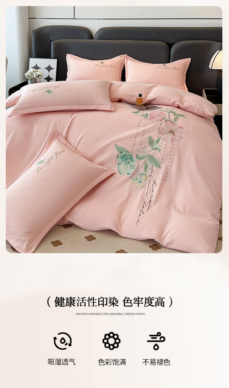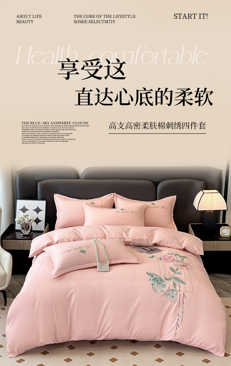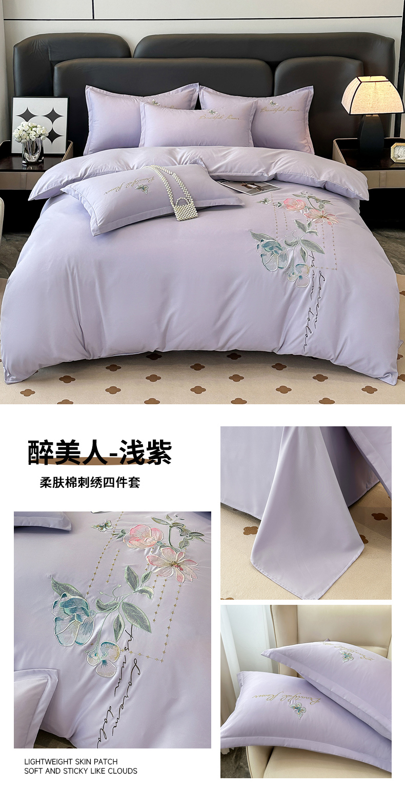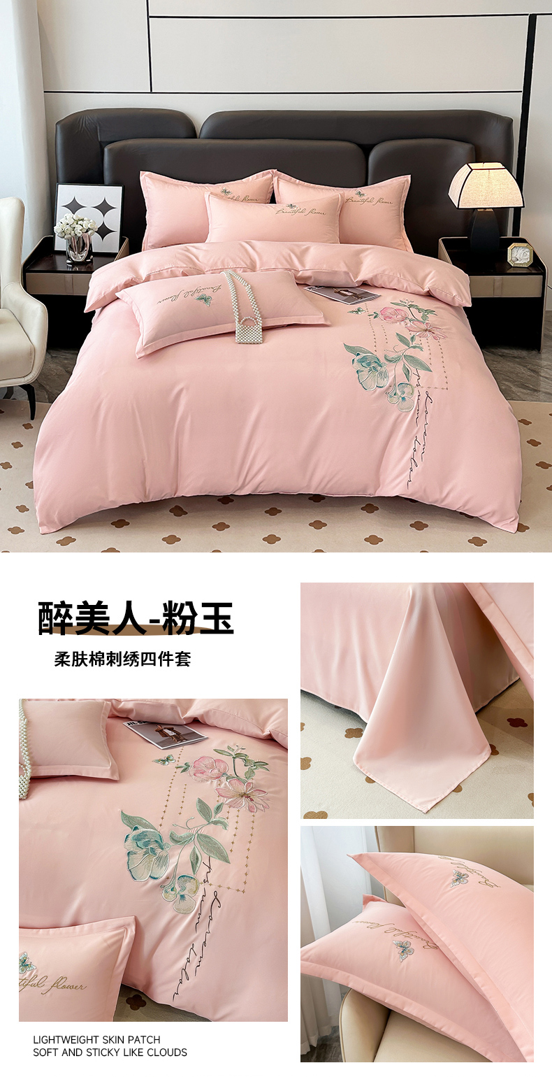 (总)帝菲妮 2025新款暖阳棉磨毛刺绣四件套花魁系列,花魁-豆沙,花魁-粉玉,花魁-橘色,花魁-蓝色,花魁-紫色