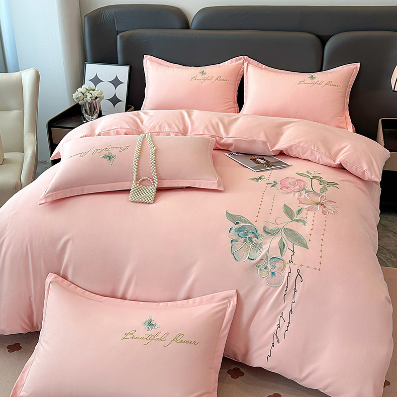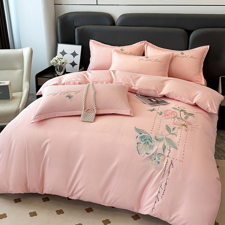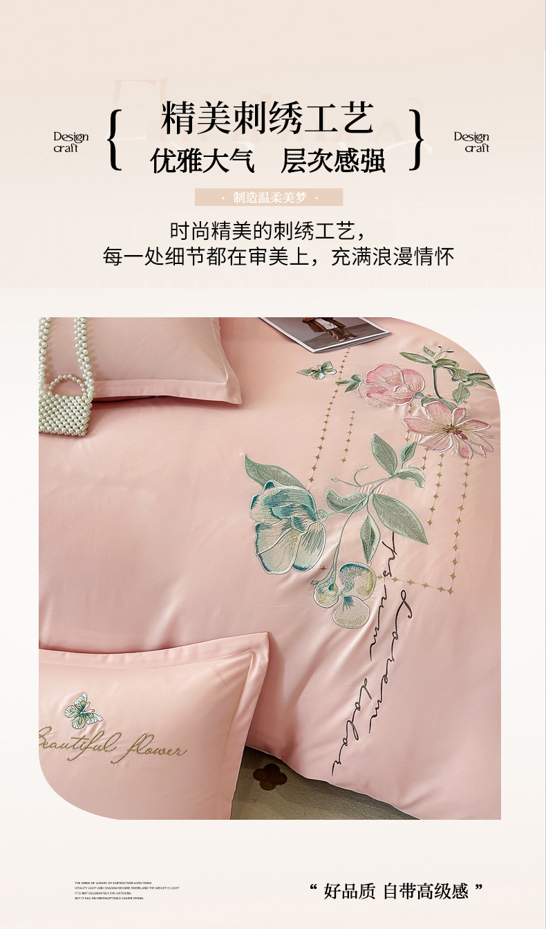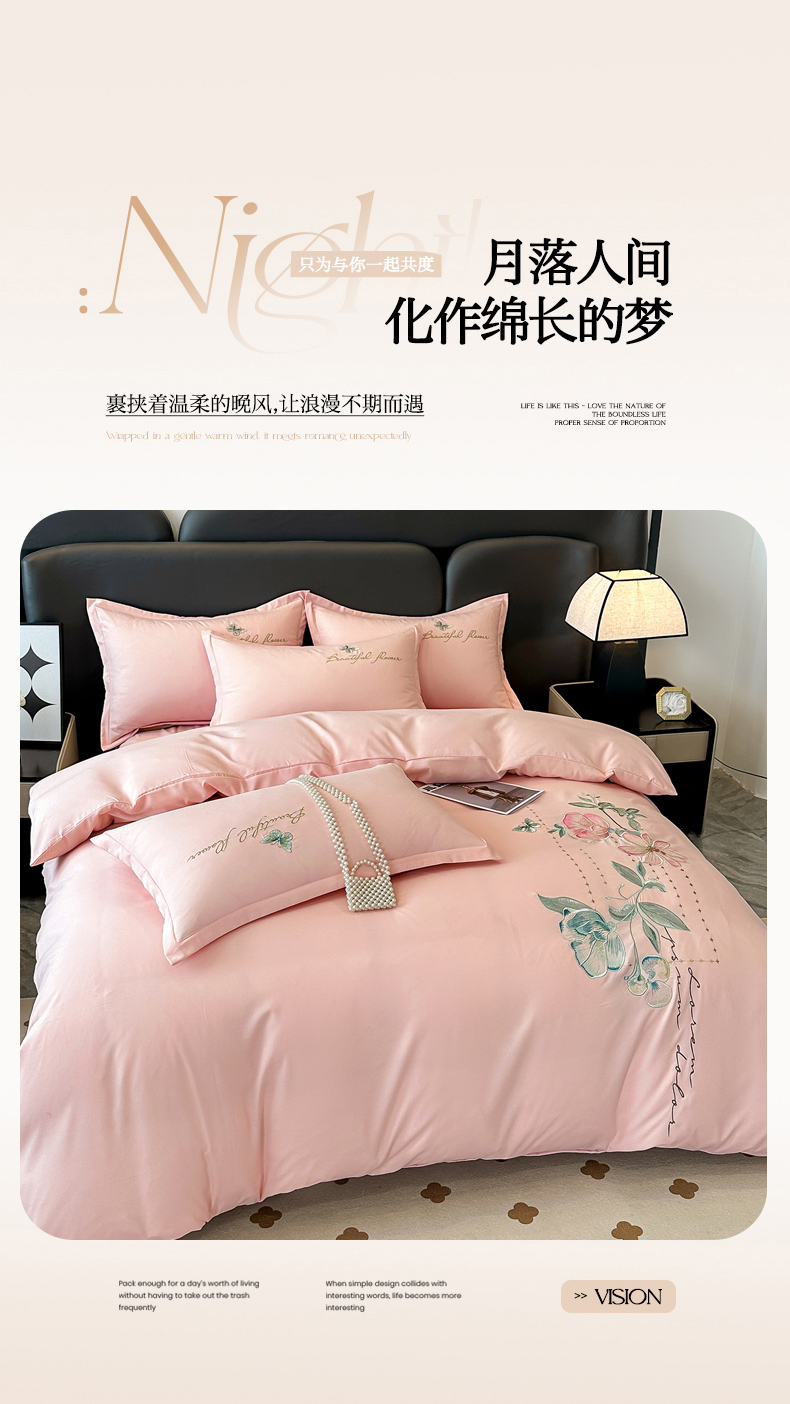 (总)帝菲妮 2025新款暖阳棉磨毛刺绣四件套花魁系列,花魁-豆沙,花魁-粉玉,花魁-橘色,花魁-蓝色,花魁-紫色