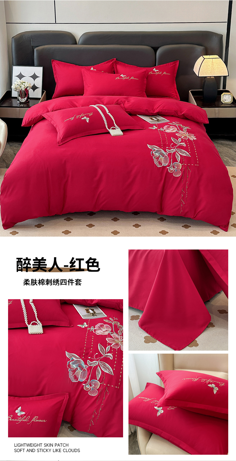 (总)帝菲妮 2025新款国潮风高克重超柔水洗棉针织棉糯小棉带质检报告刺绣四件套--花好月圆,花好月圆-粉玉,花好月圆-红色,花好月圆-蓝色,花好月圆-浅紫
