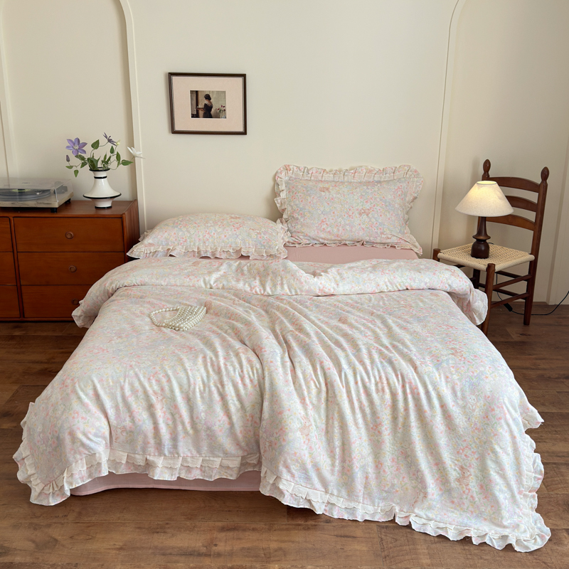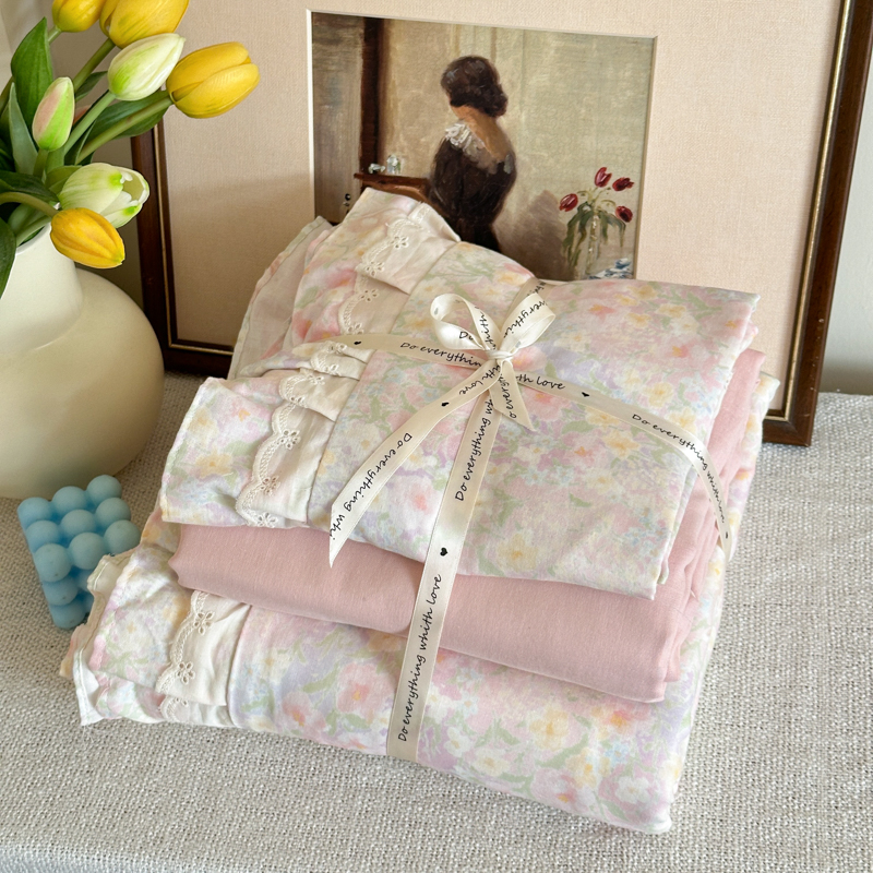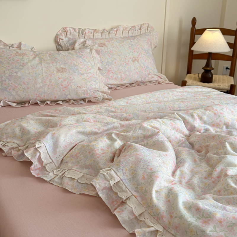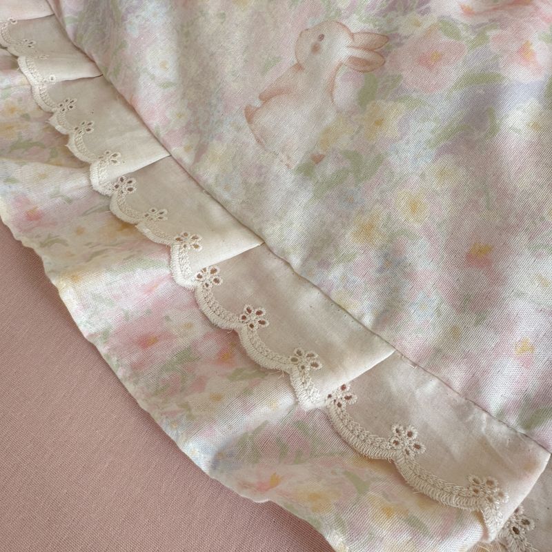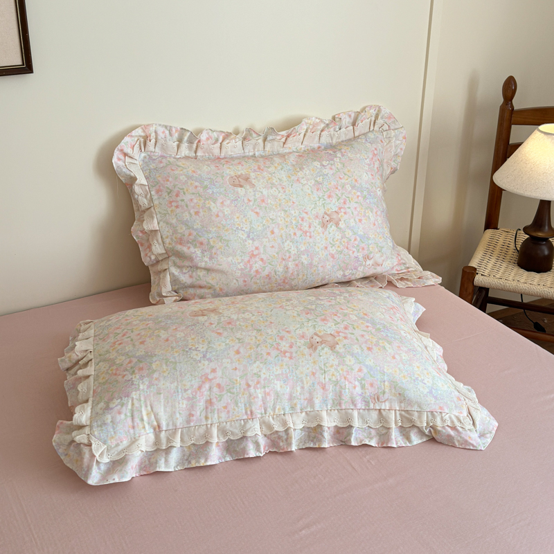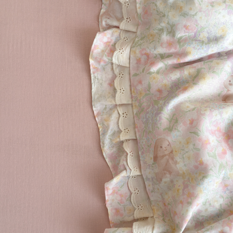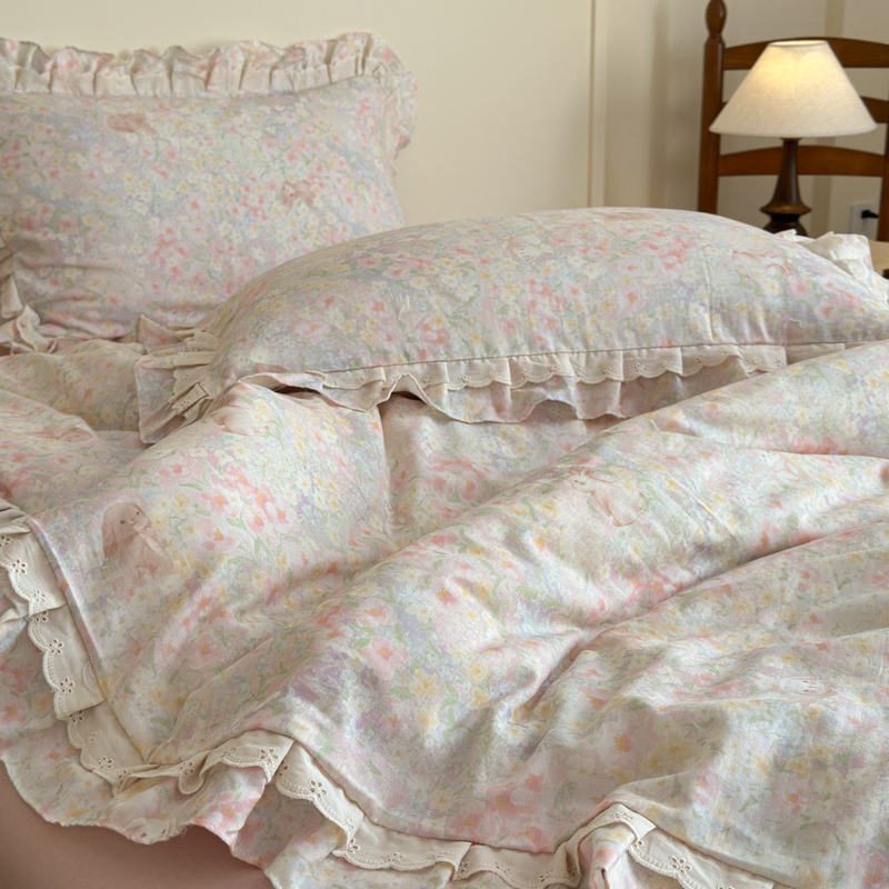 当前位置: 91家纺网 > 商品网购 > 床品套件 > 四件套 > 双层纱四件套 > 乐童家纺 2025纯棉A类双层纱双花边工艺小清新四件套 丛林小兔