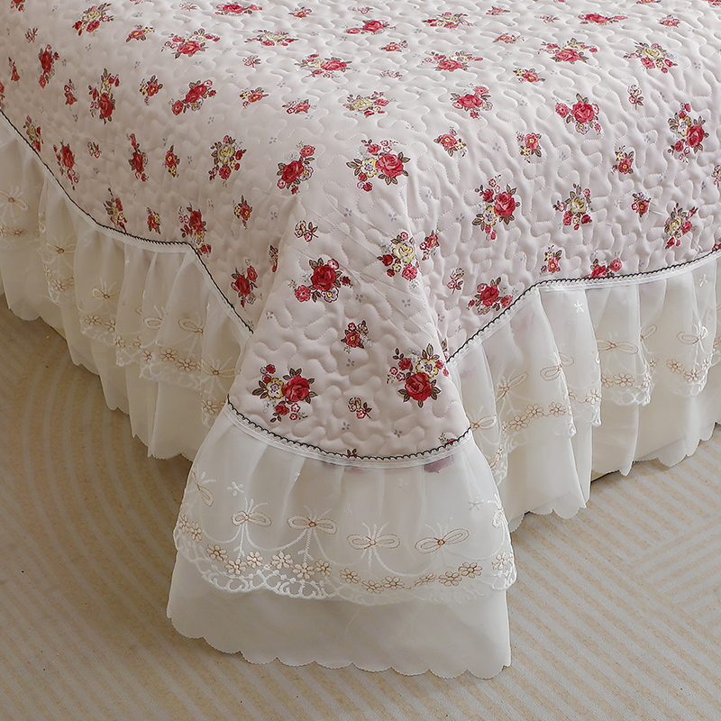 商品名称:雪夫人2025新款A类夹棉床盖床裙四件套 浮生若梦-红