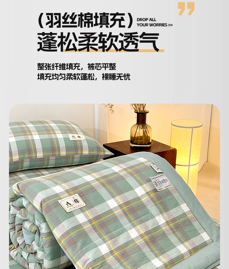 当前位置: 91家纺网 > 商品网购 > 床品套件 > 四件套 > 夏被四件套 > 21度C 2025新款色织全棉夏被四件套 雅格绿