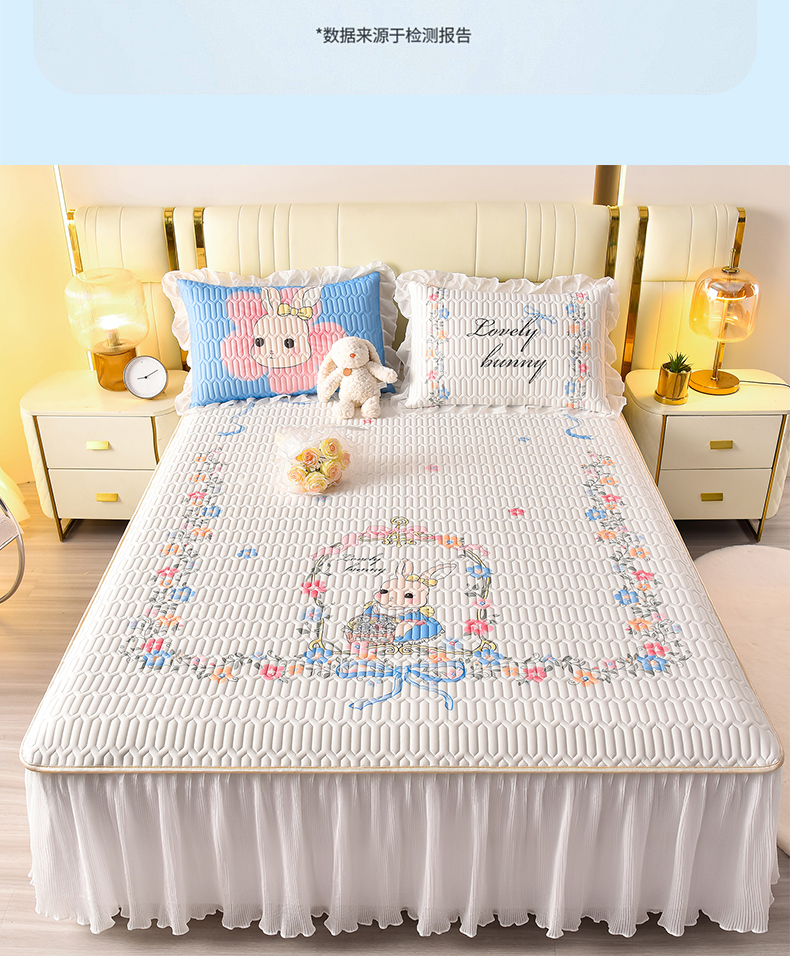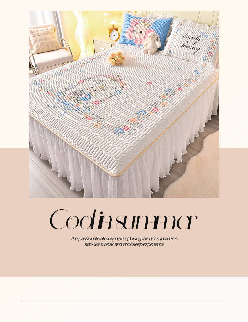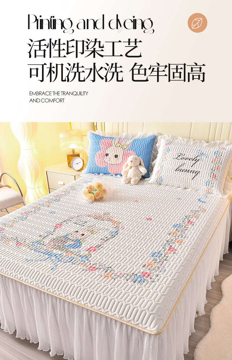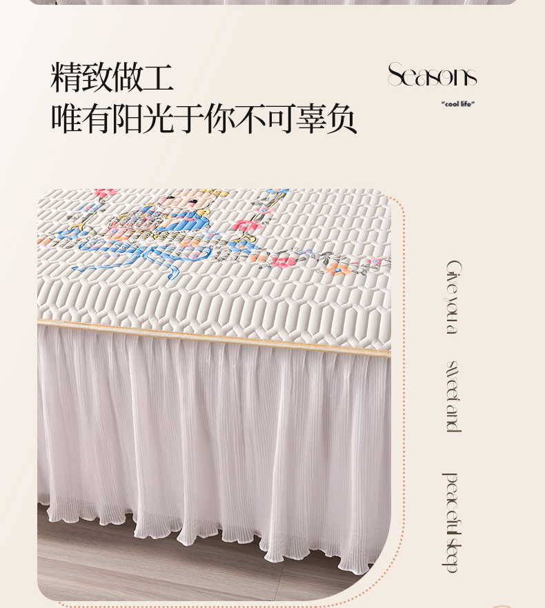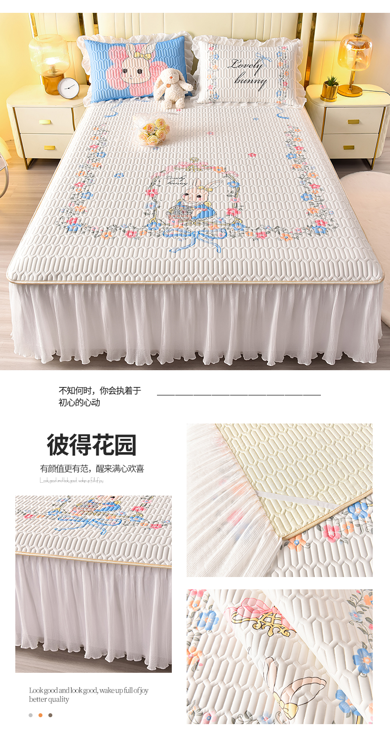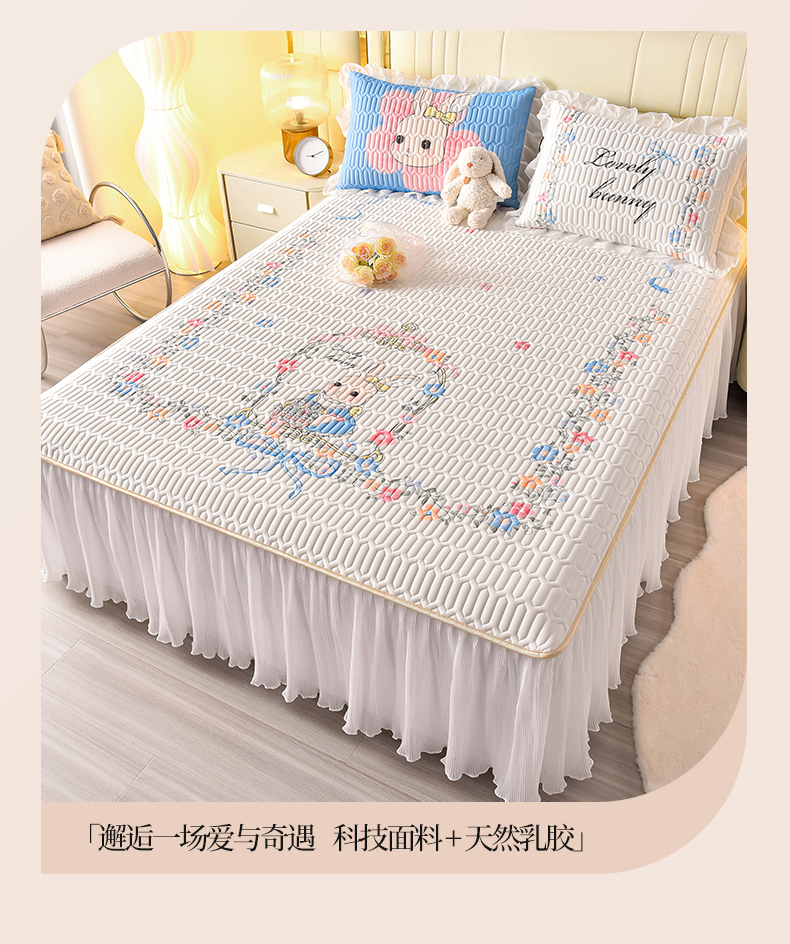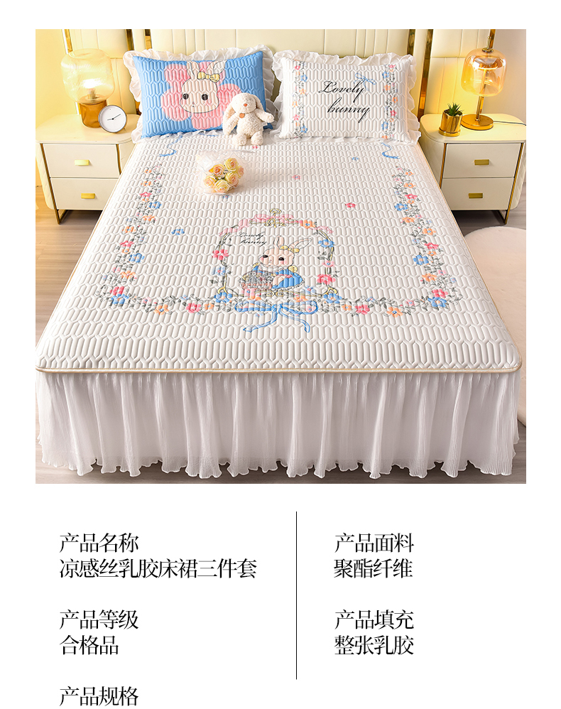 炫拼家纺 2025新款凉感丝印花床裙款乳胶凉席三件套 彼得花园