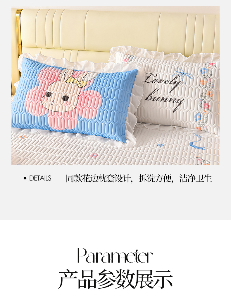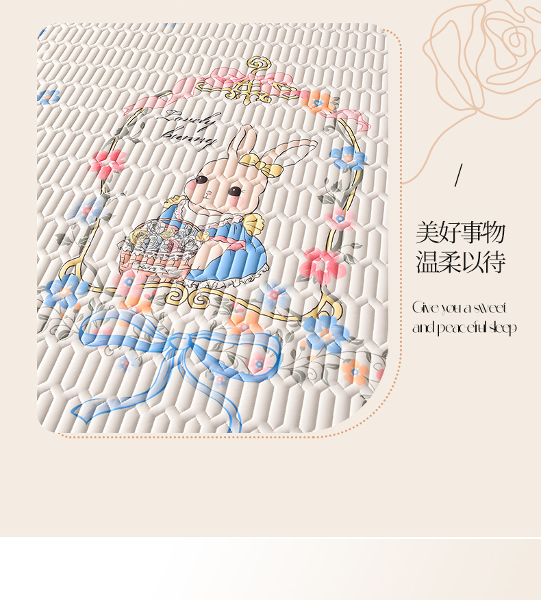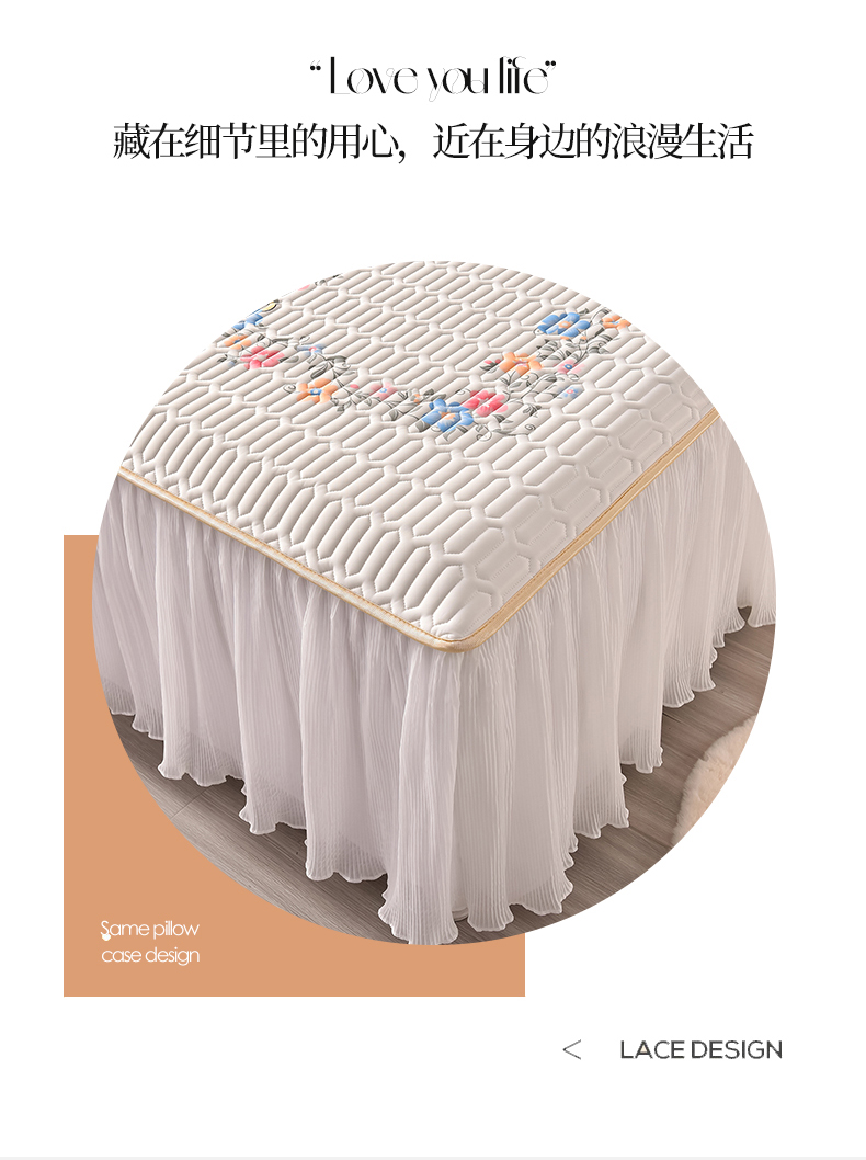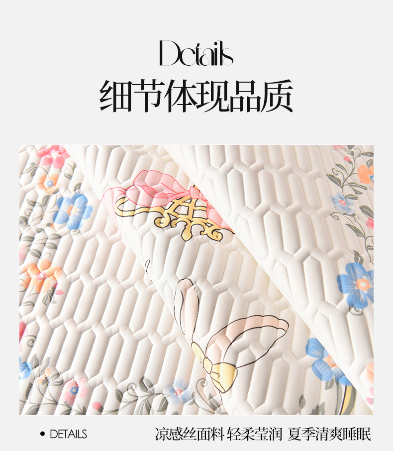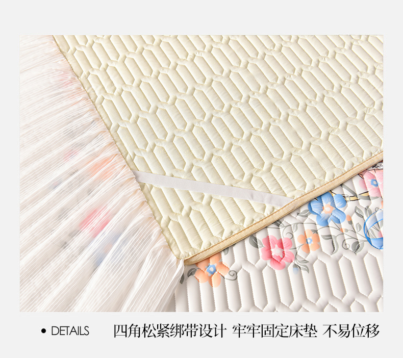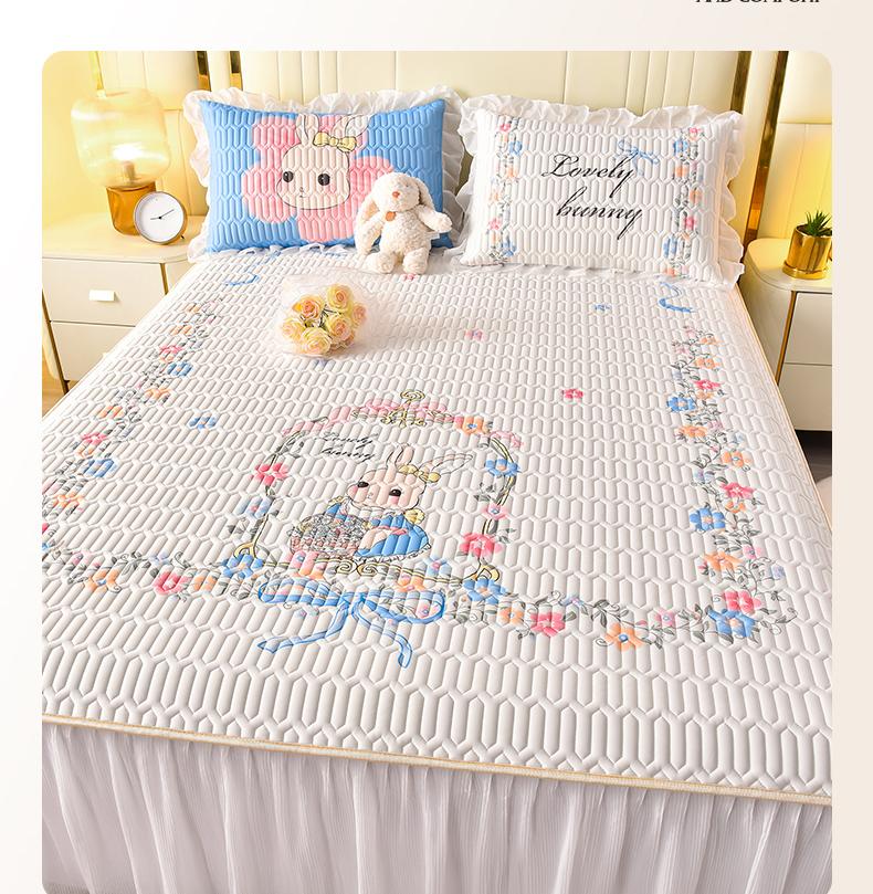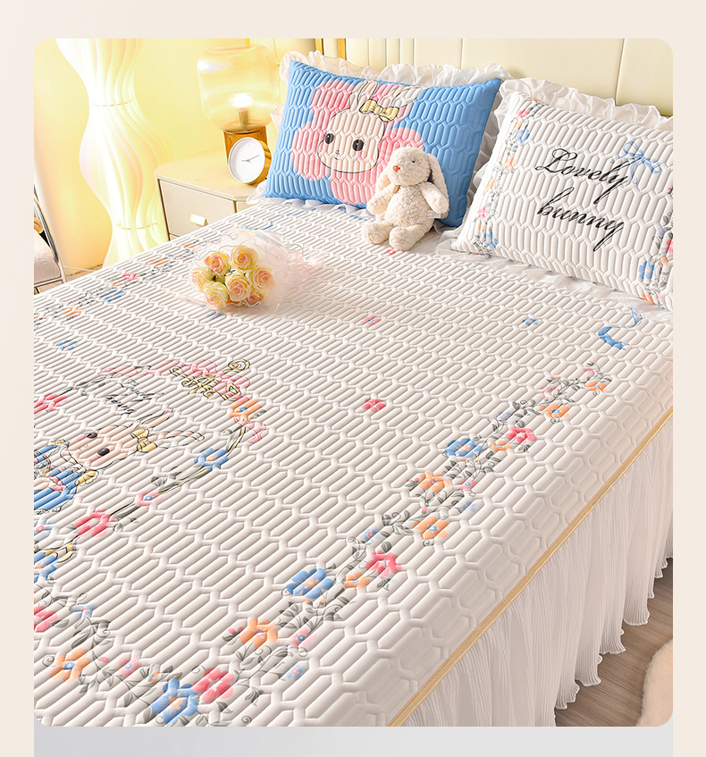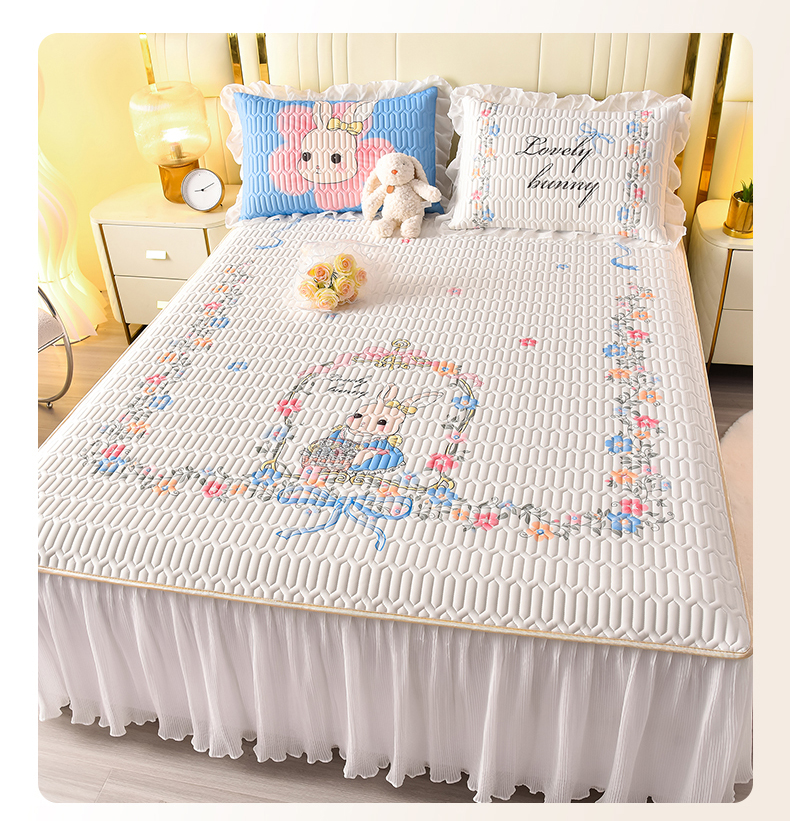炫拼家纺 2025新款凉感丝印花床裙款乳胶凉席三件套 彼得花园