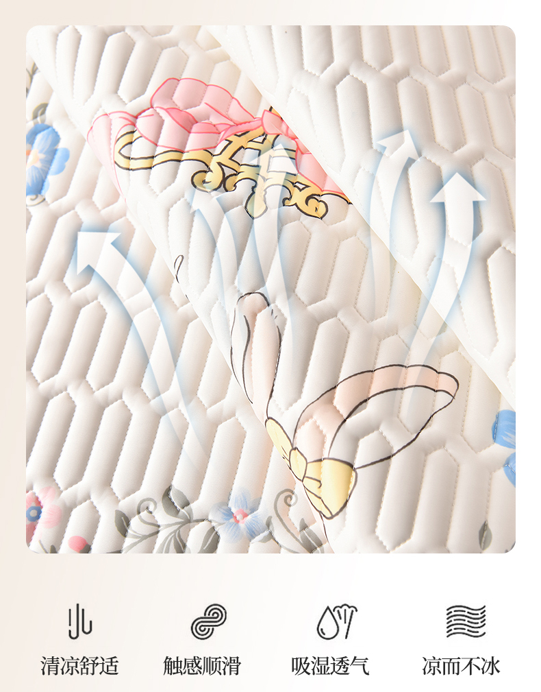 商品名称:炫拼家纺 2025新款凉感丝印花床裙款乳胶凉席三件套 彼得花园