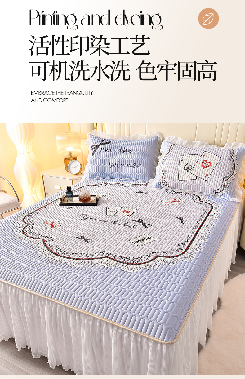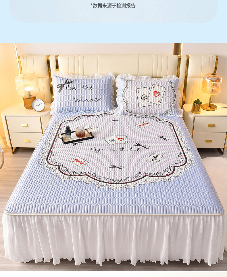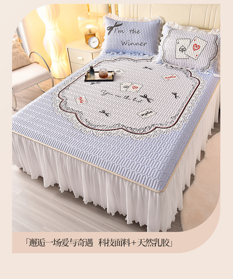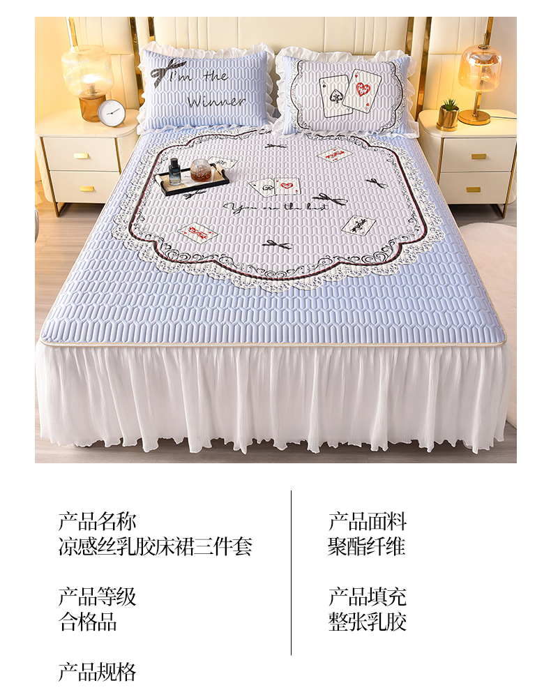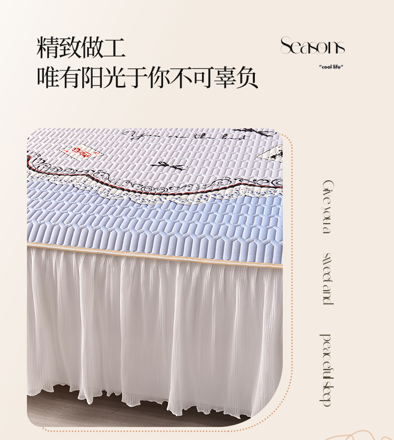 炫拼家纺 2025新款凉感丝印花床裙款乳胶凉席三件套 雅典娜