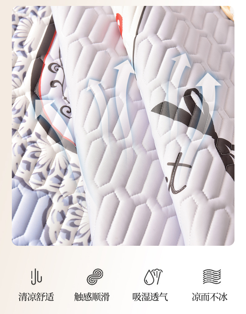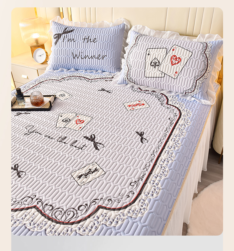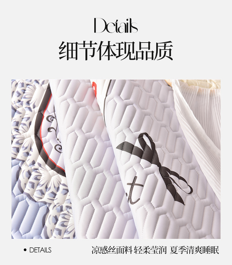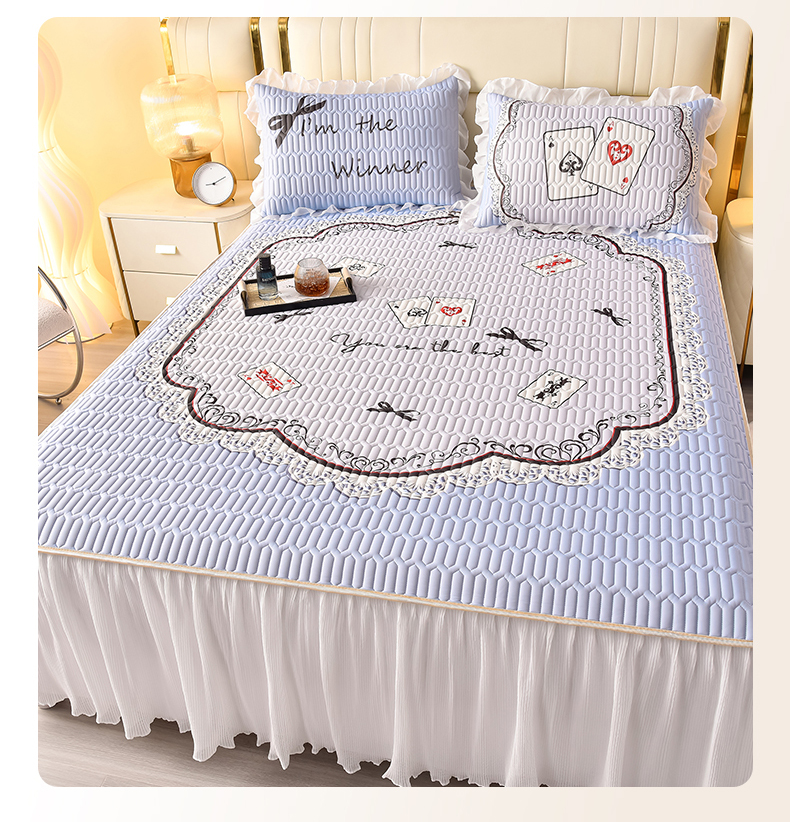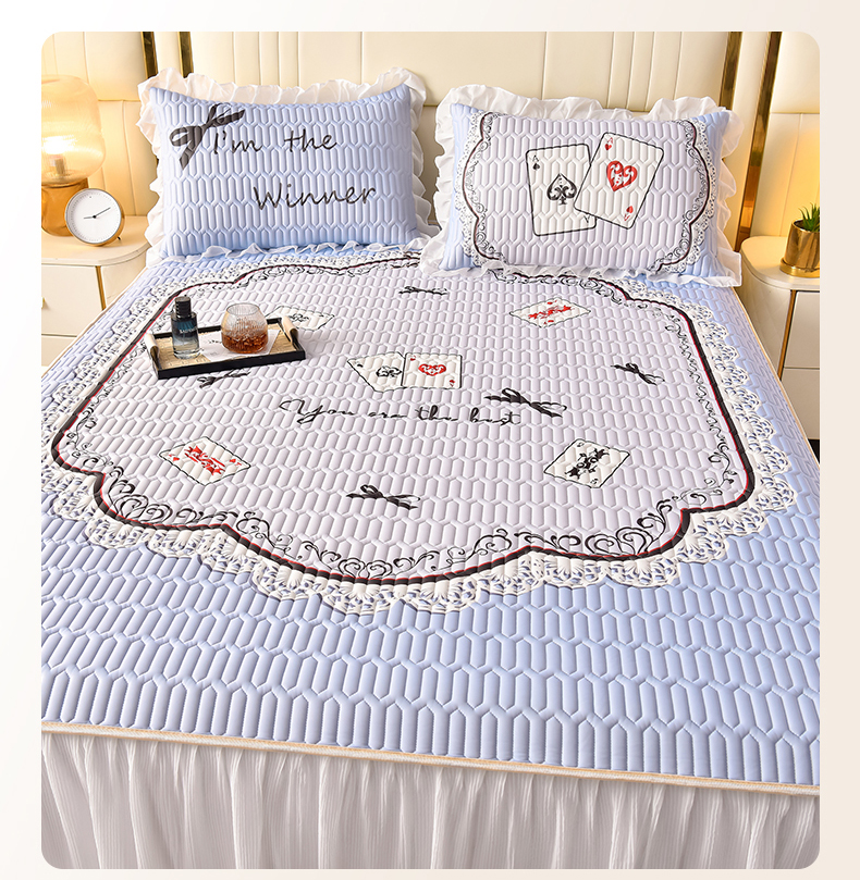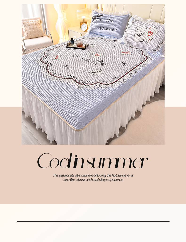 炫拼家纺 2025新款凉感丝印花床裙款乳胶凉席三件套 雅典娜