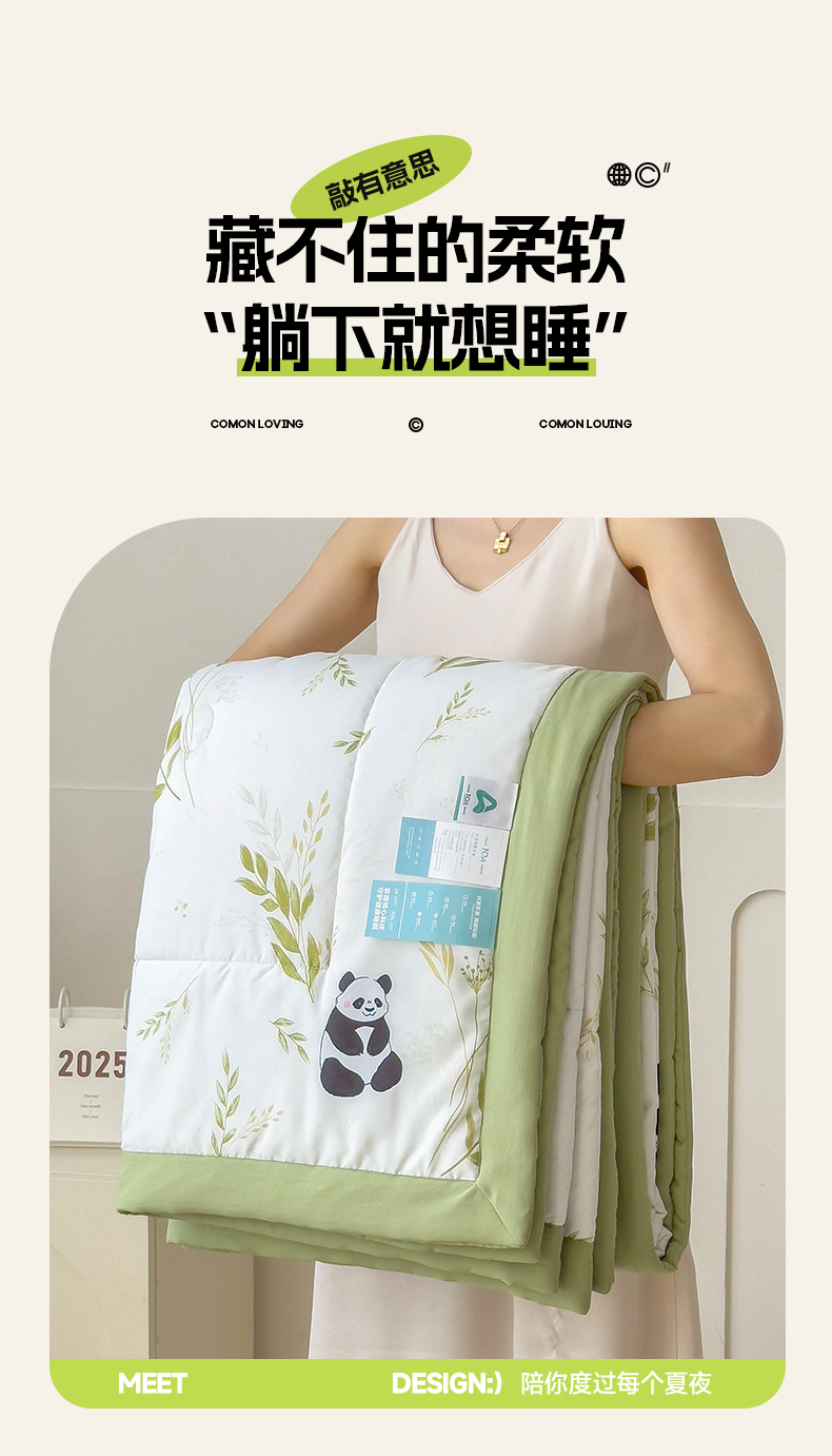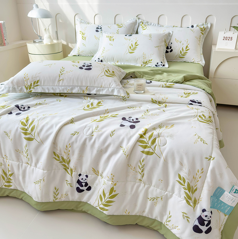 宝士康家纺 2025新款10A抗菌针织夏被四件套 熊猫乐园