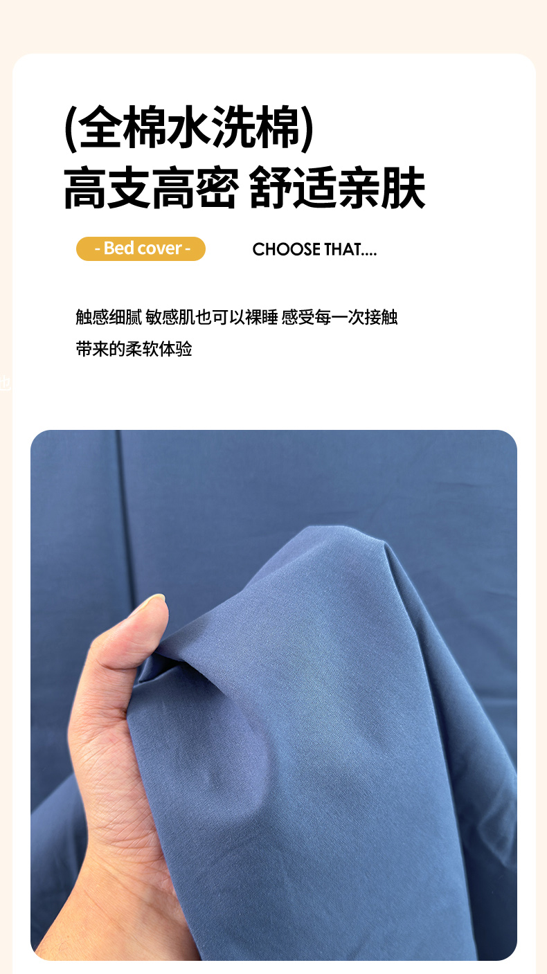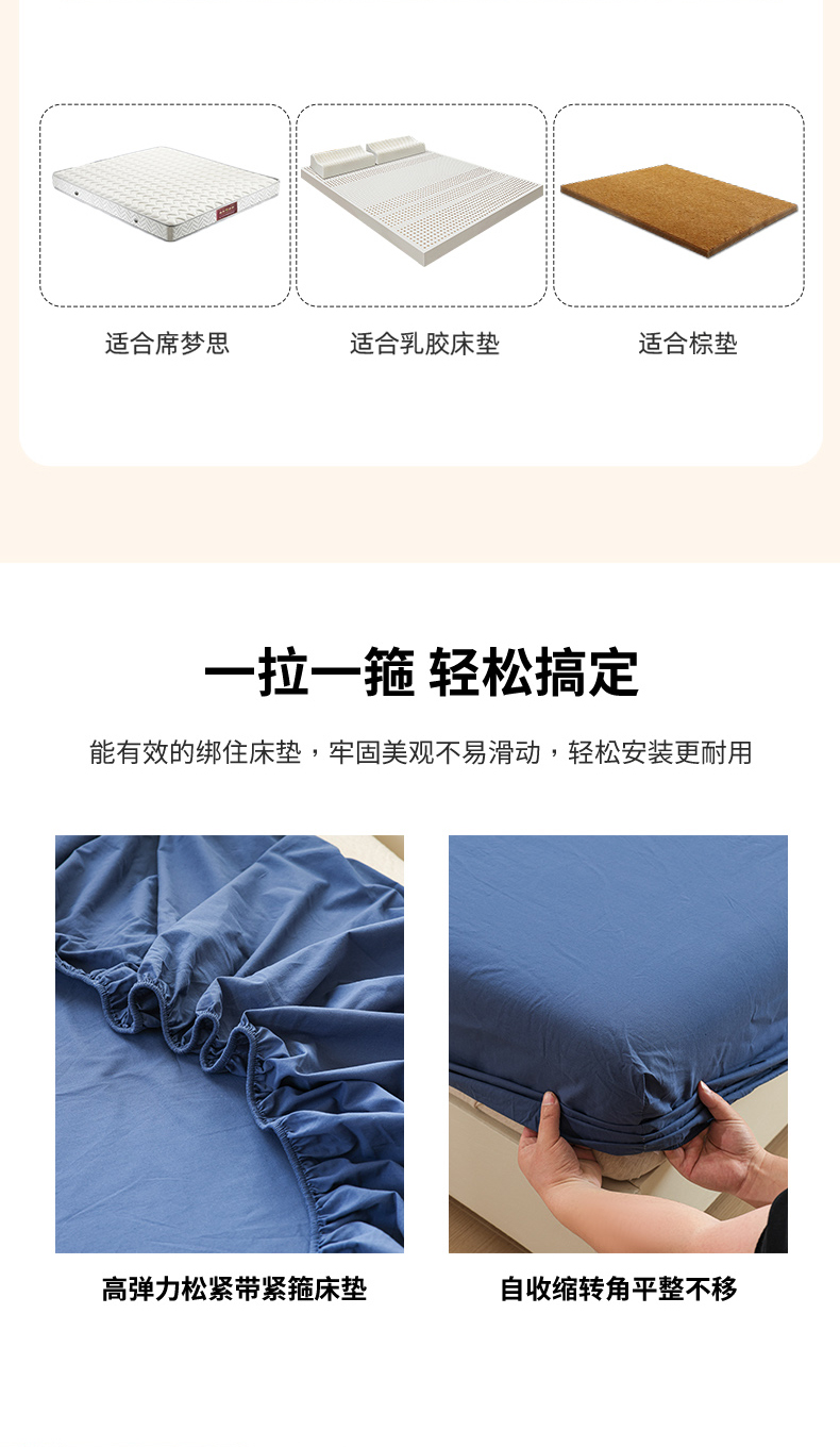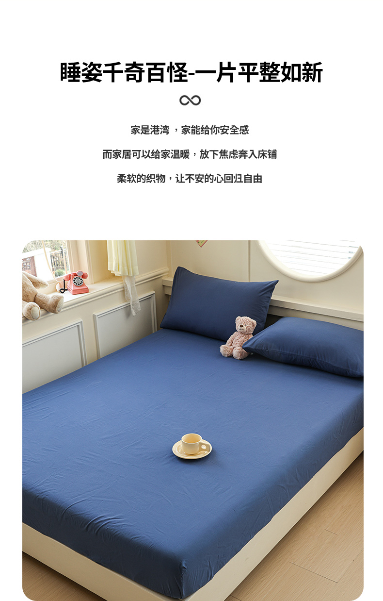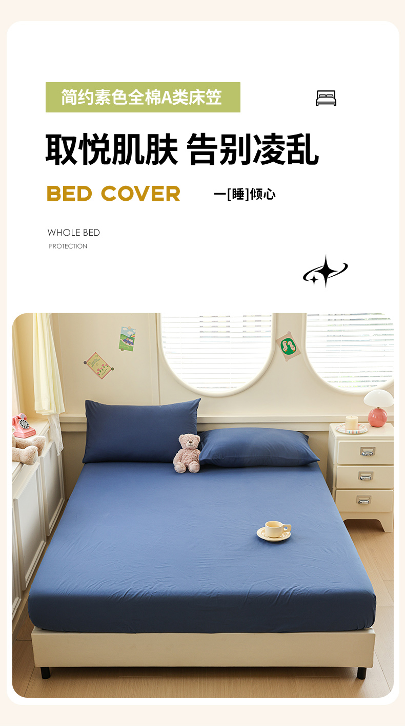 • 91家纺网 家纺一手货源 找家纺 2025新款全棉A类简约素色水洗棉纯棉单床笠 宝石蓝