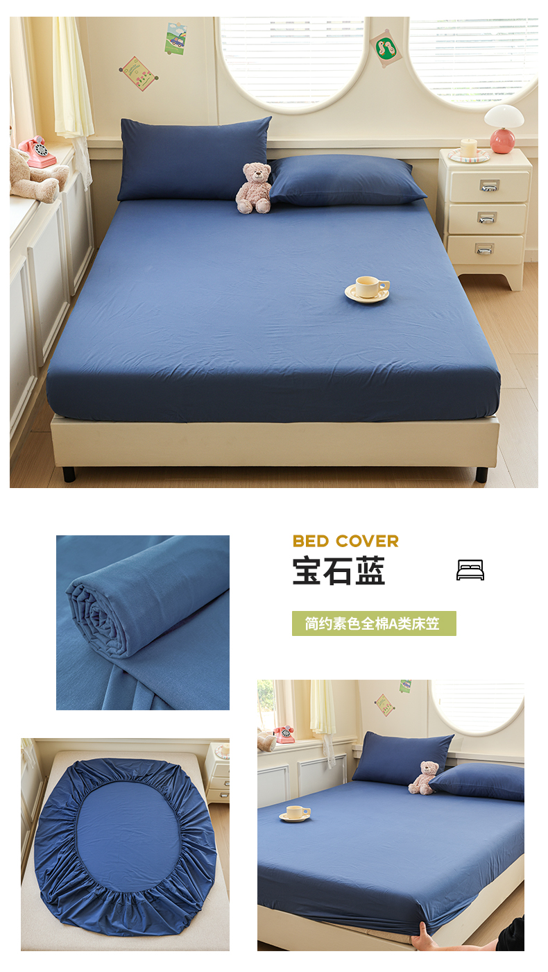 2025新款全棉A类简约素色水洗棉纯棉单床笠 宝石蓝