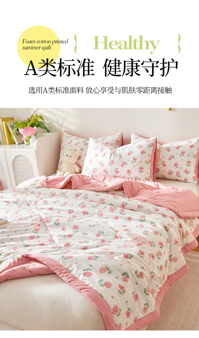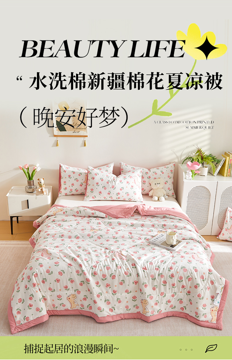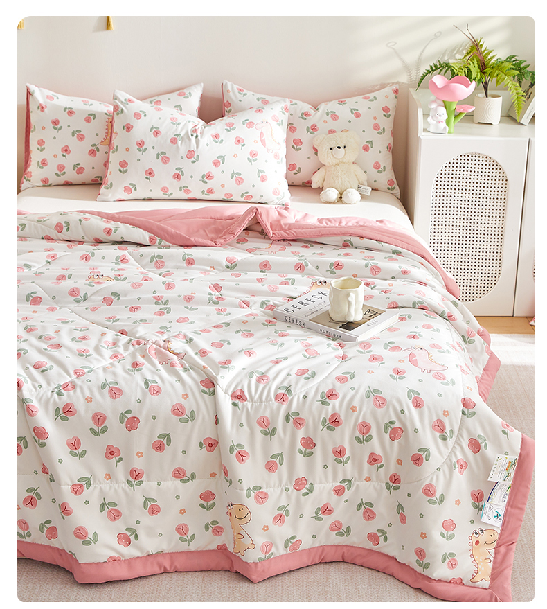 商品名称:海洋家纺 2025款水洗棉纯棉花夏凉被全棉花印花夏被空调被薄被子 花漾粉