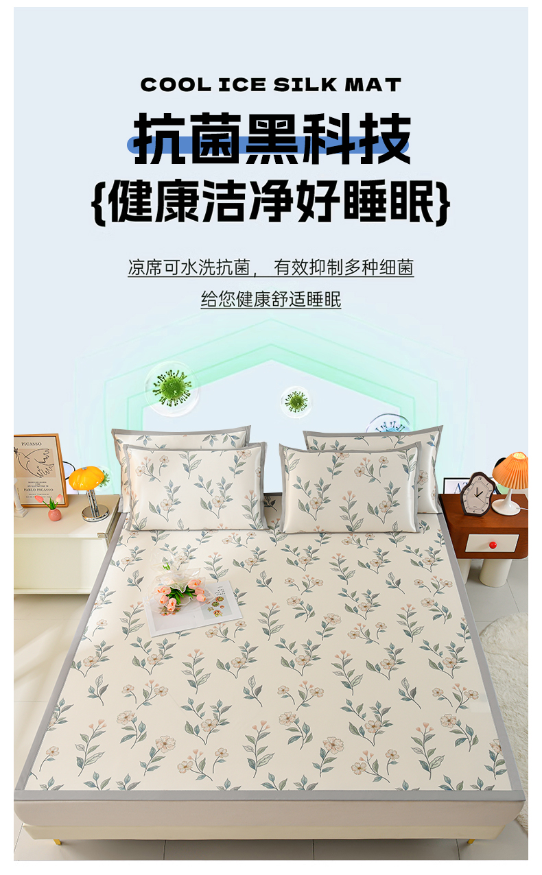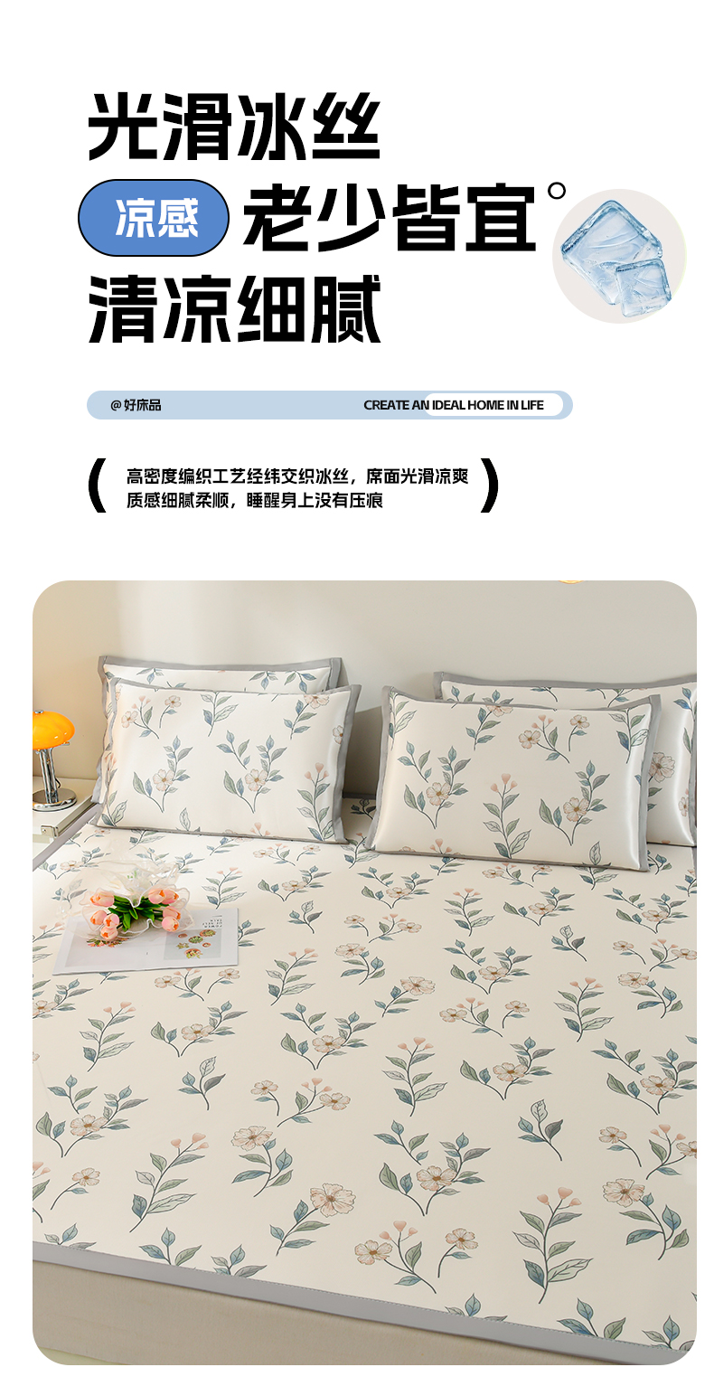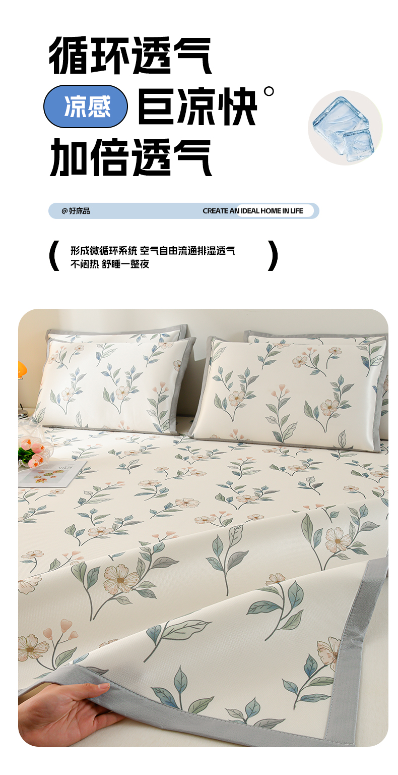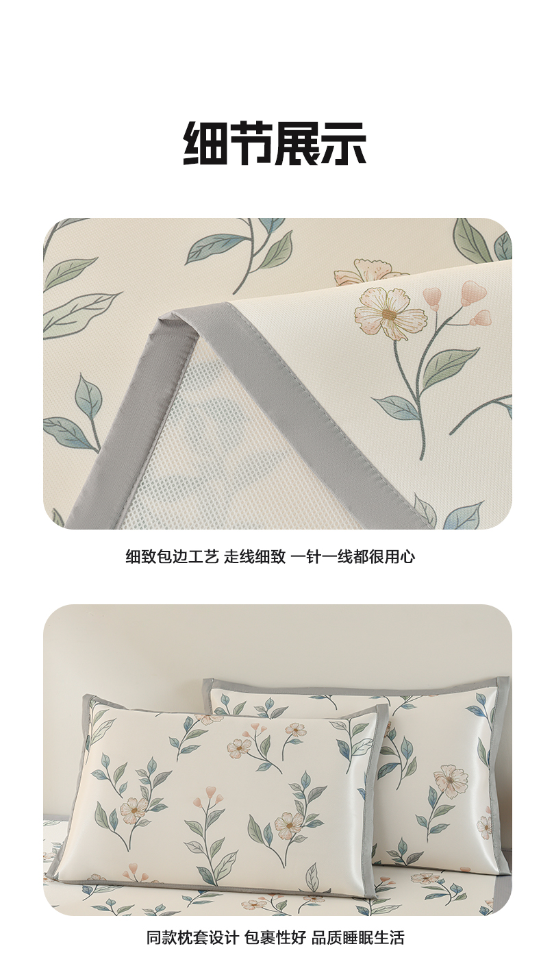 商品名称:简一 2025新款A类碳光印花数码冰丝凉席系列-床单款 浅花枝香