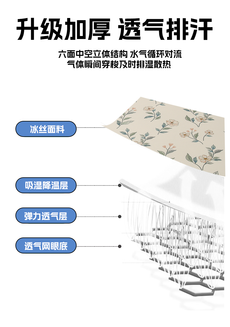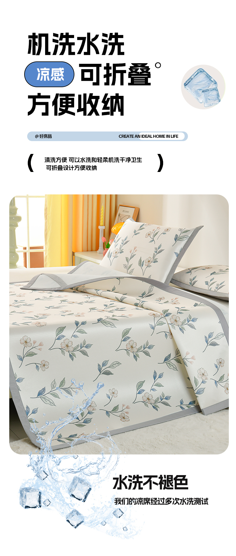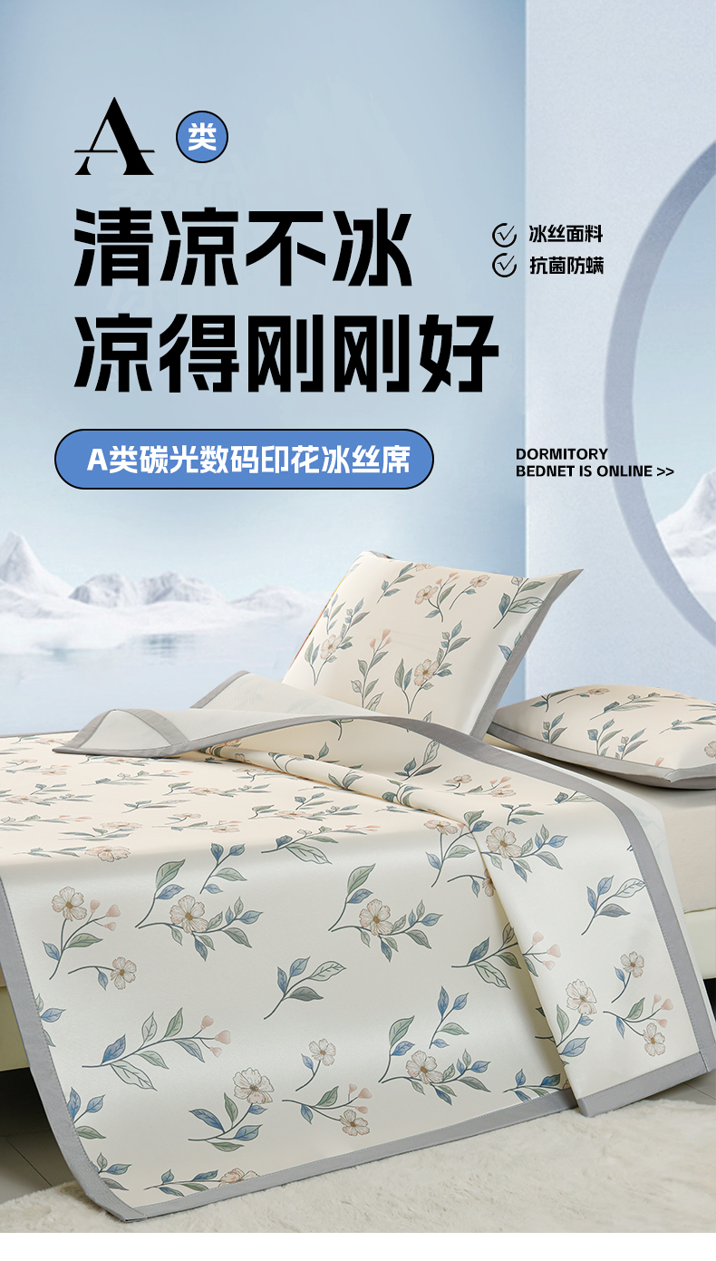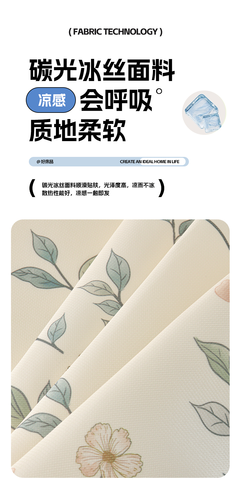 商品名称:简一 2025新款A类碳光印花数码冰丝凉席系列-床单款 浅花枝香