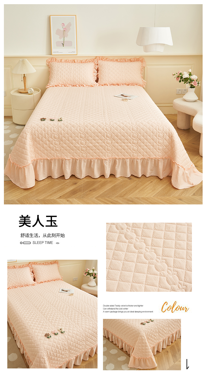 (总)恒爱 2022秋冬水晶绒翩翩花舞夹棉床裙四件套,大红色,豆沙红,橄榄绿,公主粉,桔色,咖啡色,孔雀绿,拉菲红,罗兰紫,玫红色,美人玉,米白色,米驼色,抹茶绿,浅灰色,紫色