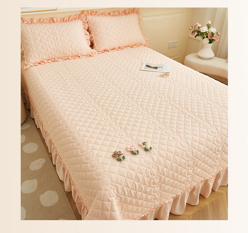 商品名称:恒爱家纺 2025新款A类泡泡纱床盖-杜鹃 美人玉