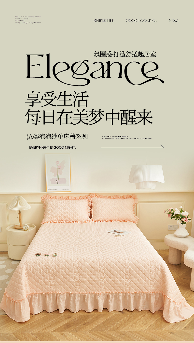 恒爱家纺 2025新款A类泡泡纱床盖-杜鹃 美人玉