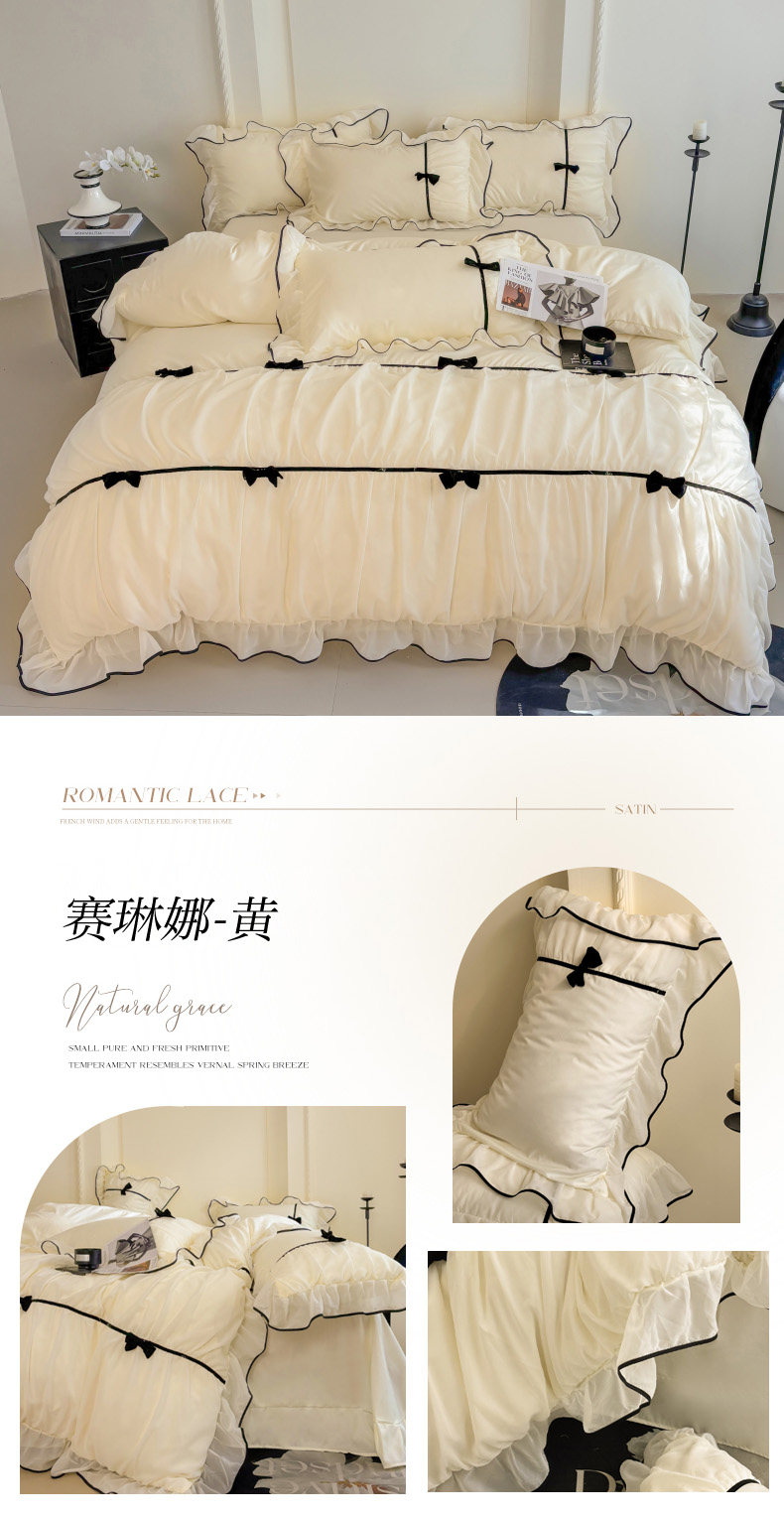 商品名称:艺玲2025新款法式高定蝴蝶结赛琳娜雪纺花边四件套 赛琳娜-黄