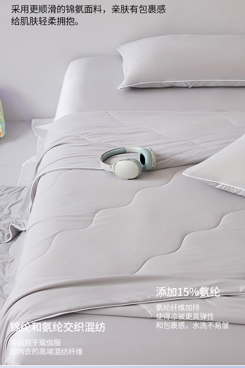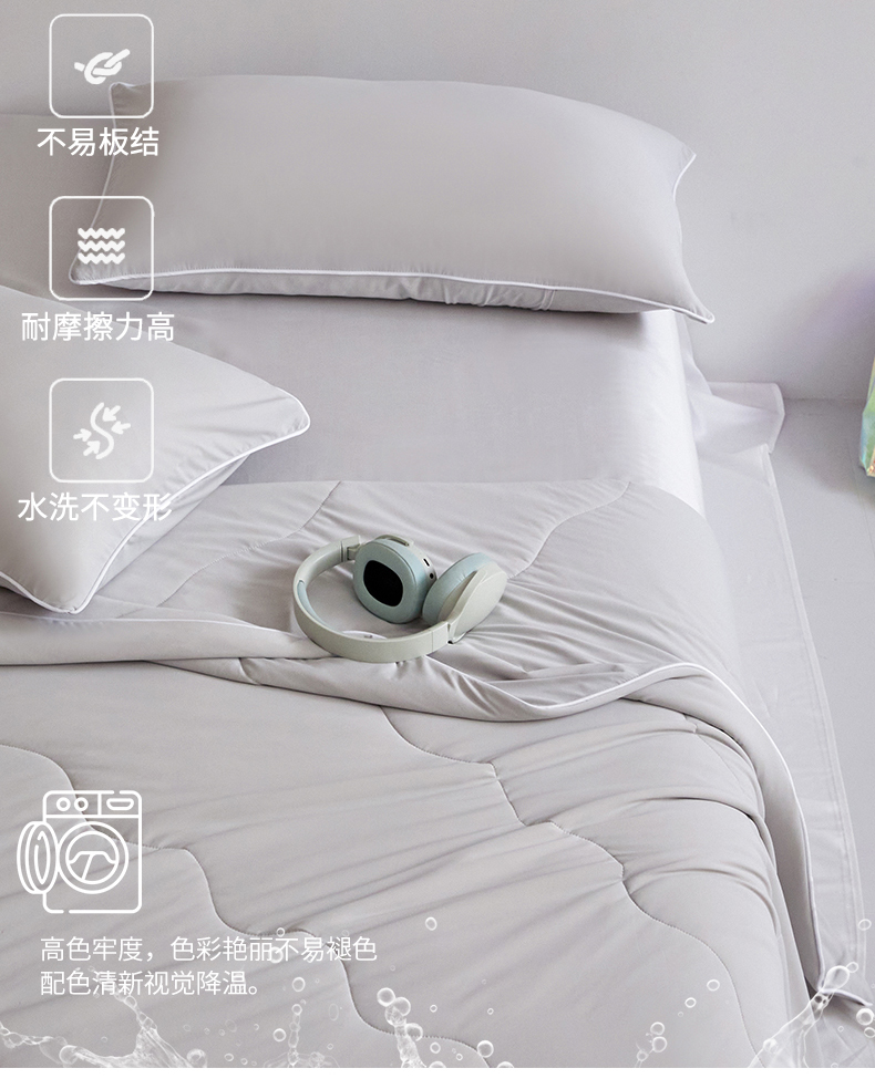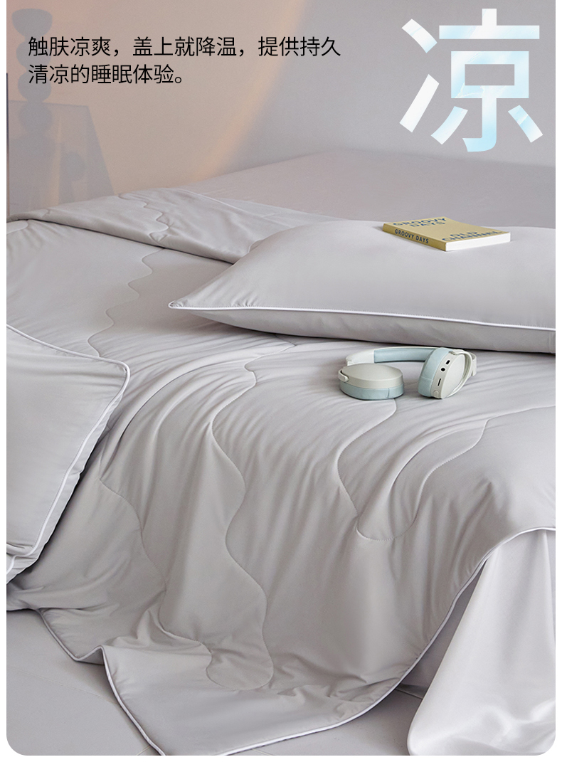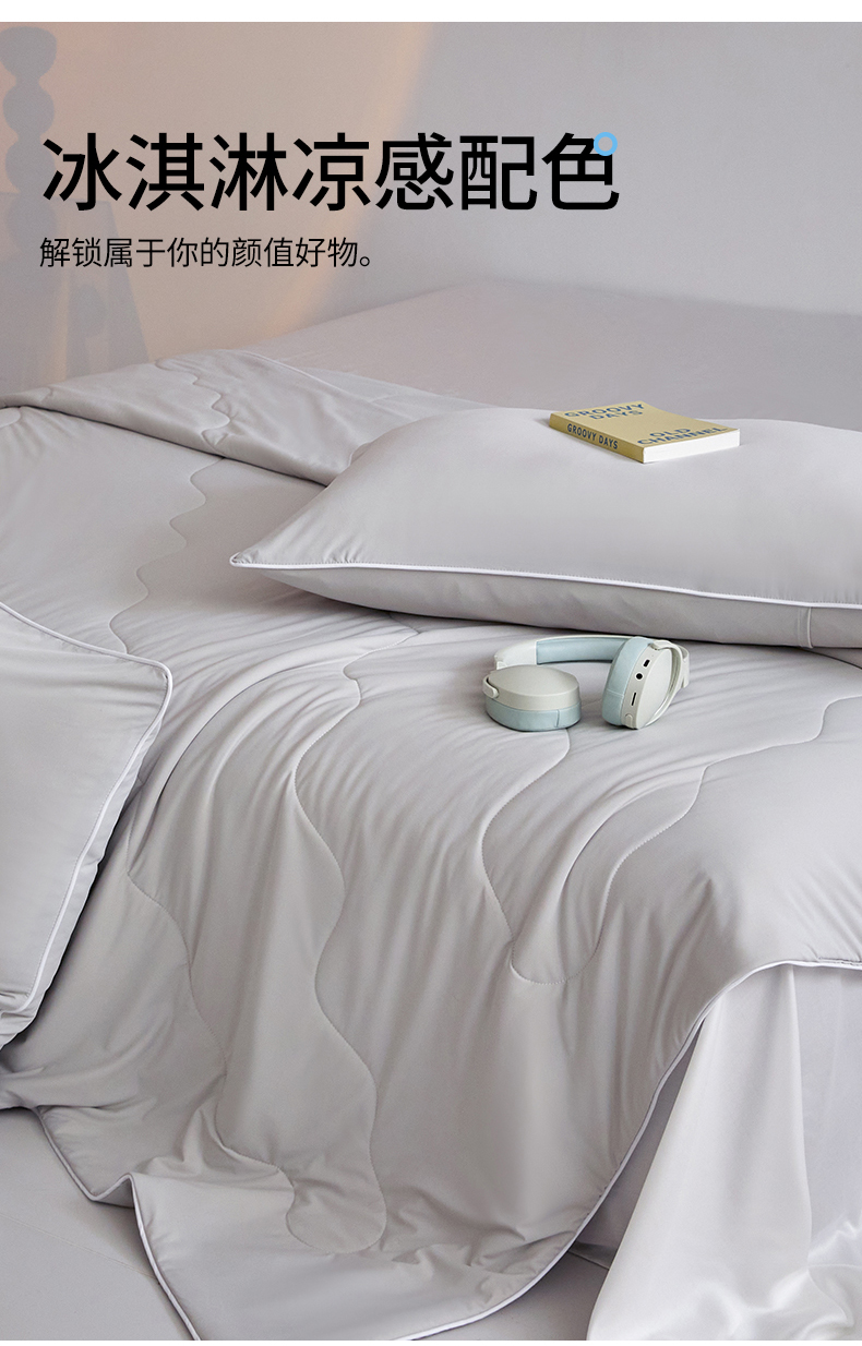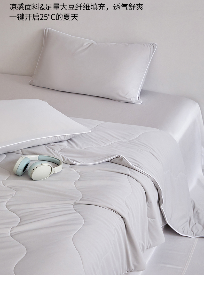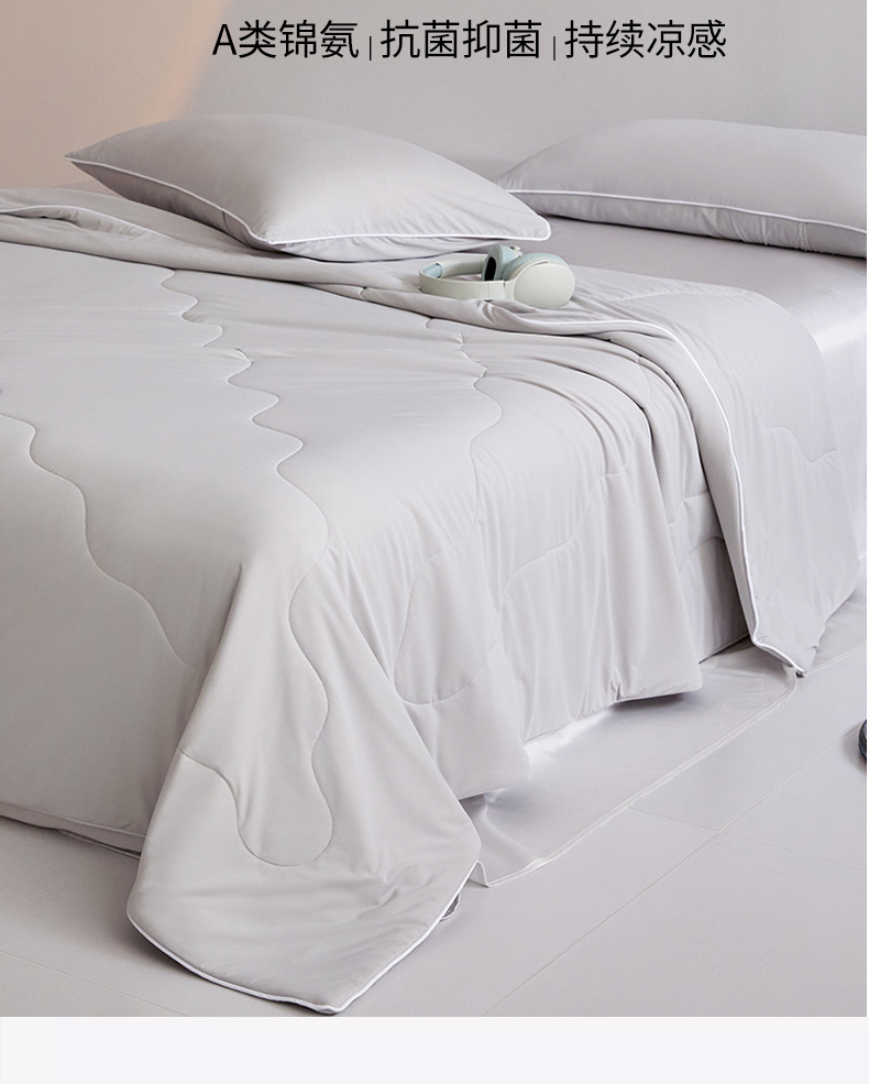 商品名称:头等舱 2025新款4.0版凉感A类锦氨(165克)55大豆抗菌夏被配礼盒 浅灰