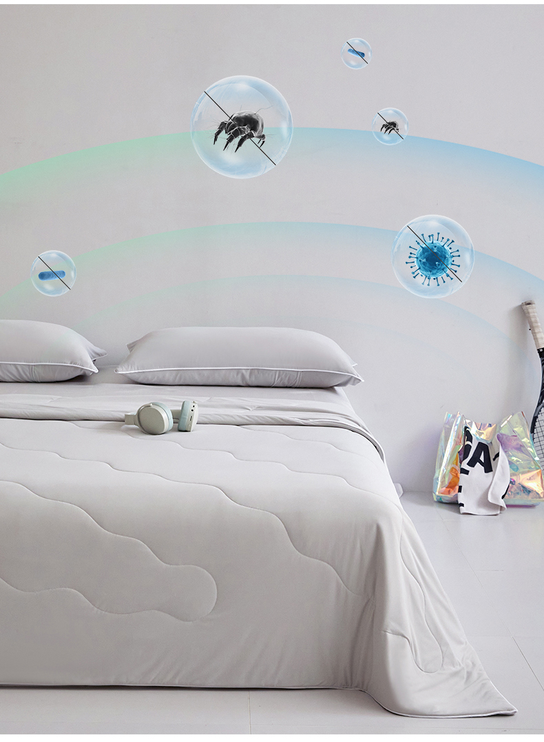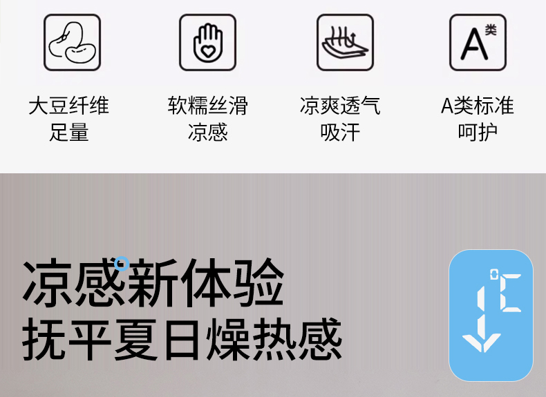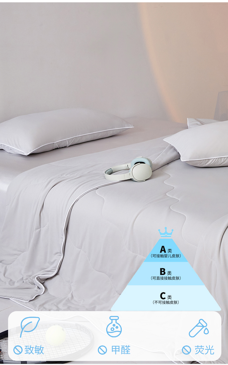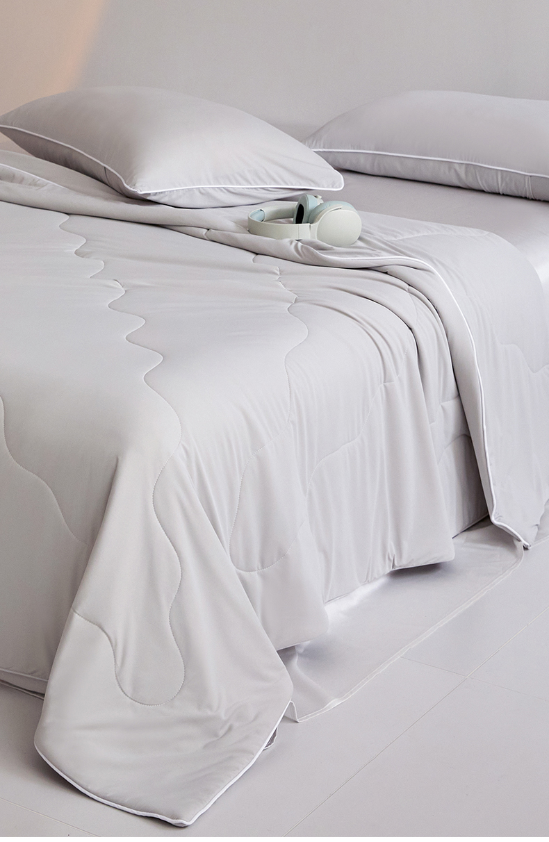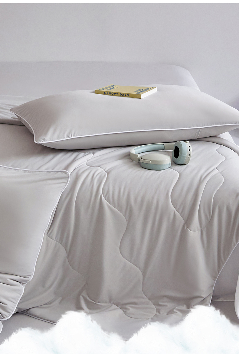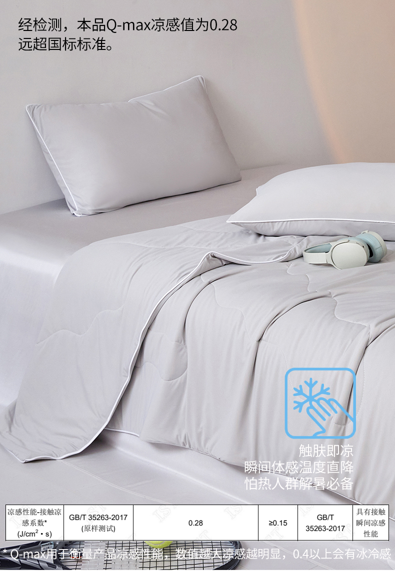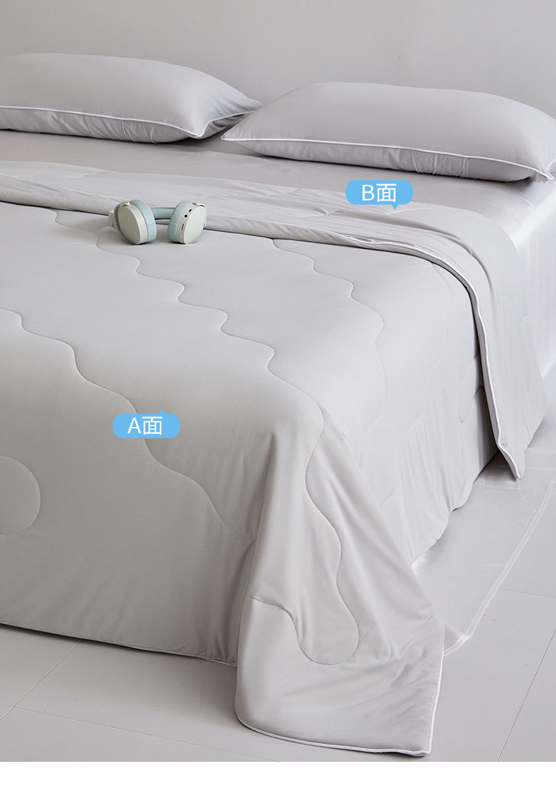 商品名称:头等舱 2025新款4.0版凉感A类锦氨(165克)55大豆抗菌夏被配礼盒 浅灰