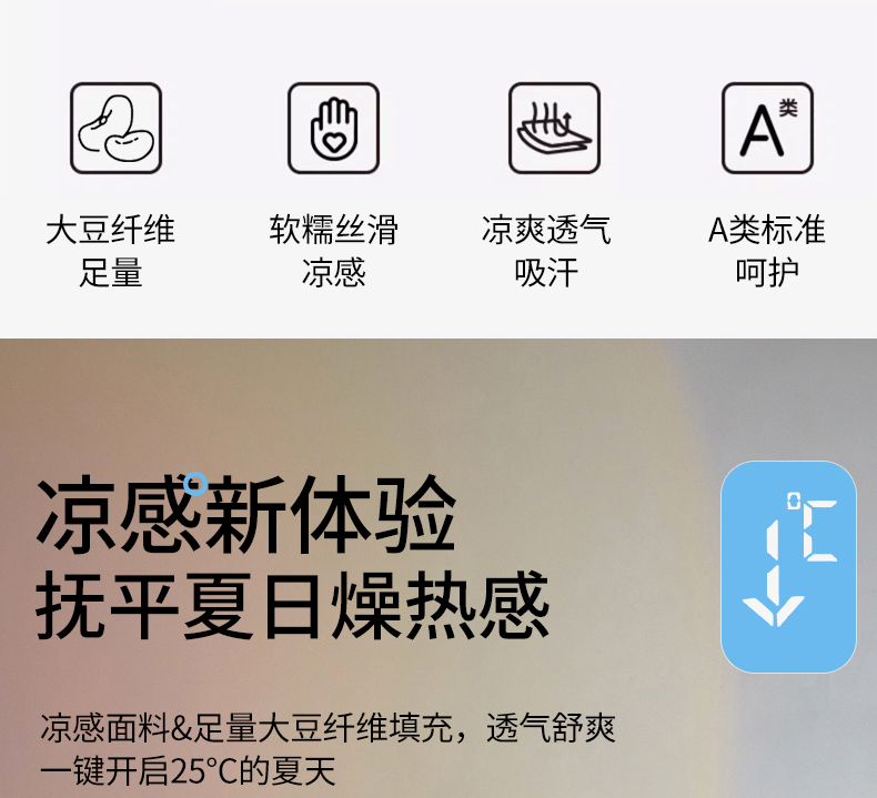 头等舱 2025新款4.0版凉感A类锦氨(165克)55大豆抗菌夏凉被夏被配礼盒模特图 浅灰拼浅豆沙