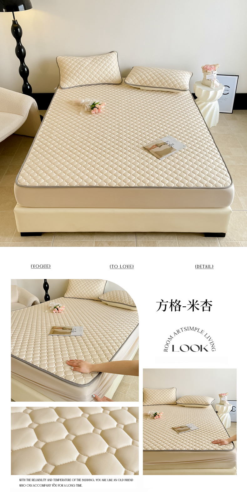 • 91家纺网 家纺一手货源 找家纺 欧邦2025新款纯色加厚乳胶床笠三件套 方格-米杏