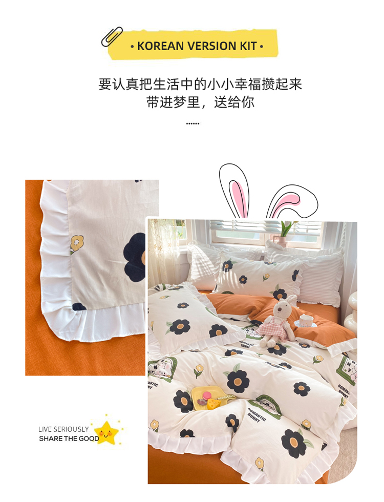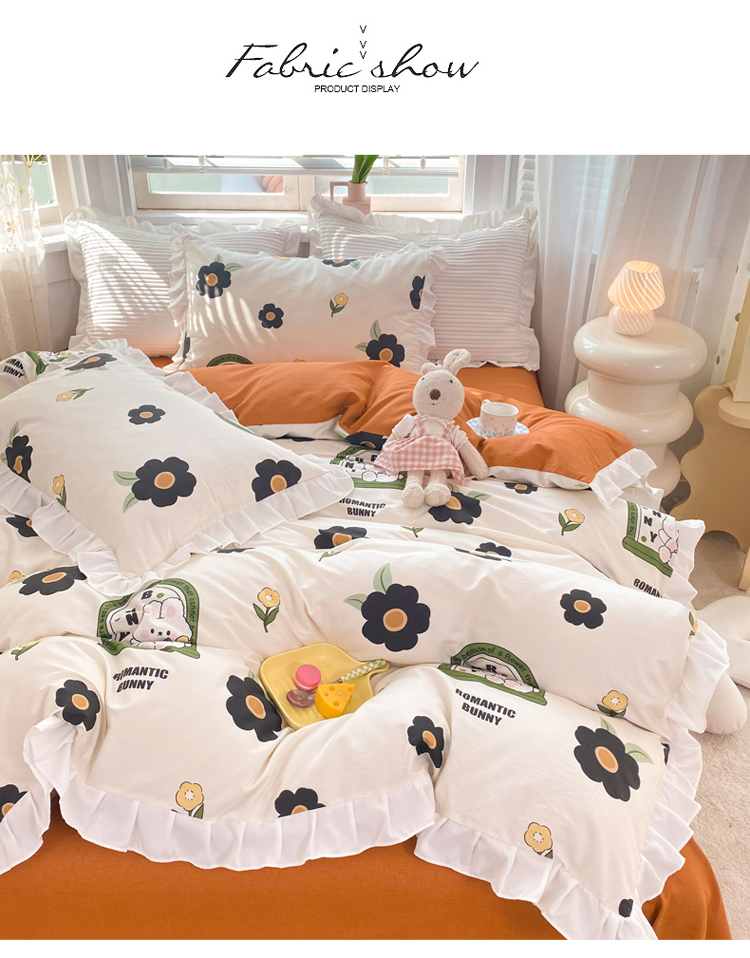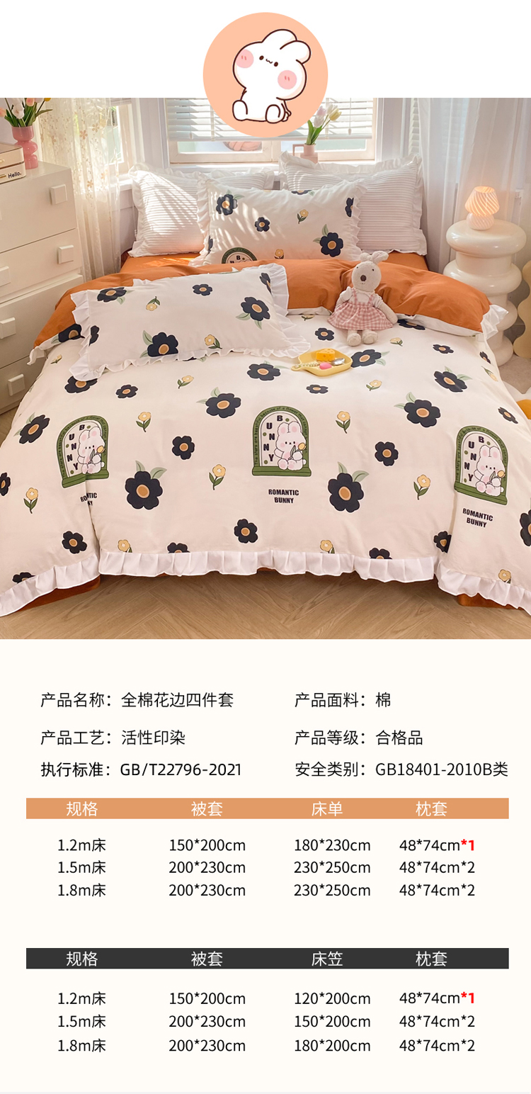当前位置: 91家纺网 > 商品网购 > 床品套件 > 四件套 > 全棉普通四件套 > 2025新款公主风四件套全棉纯棉白花边被套床单款式三件套 邦尼兔