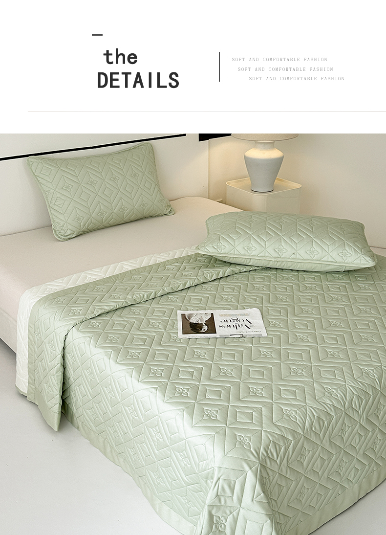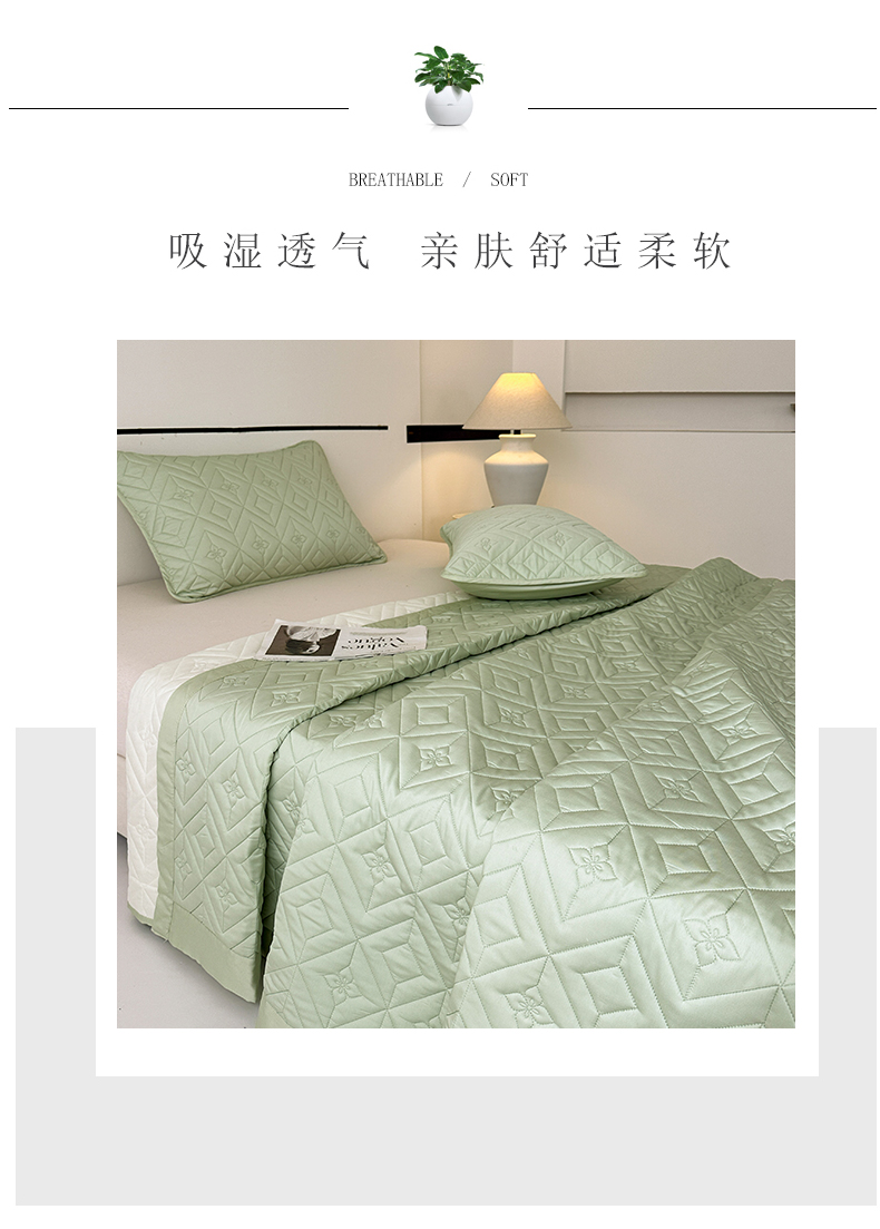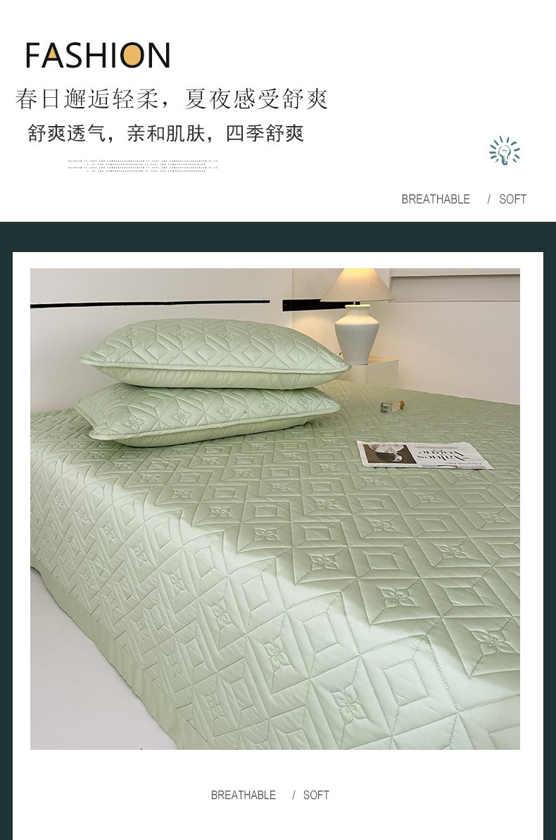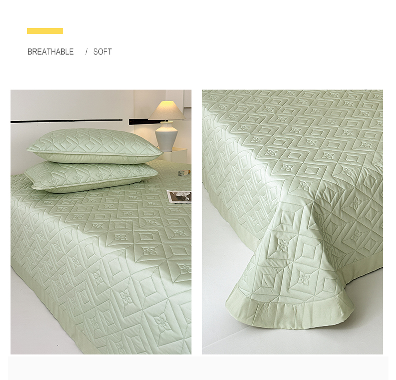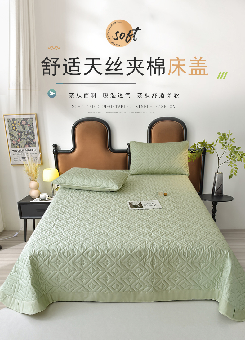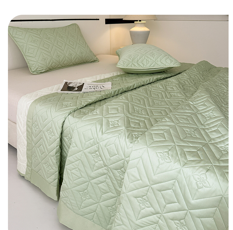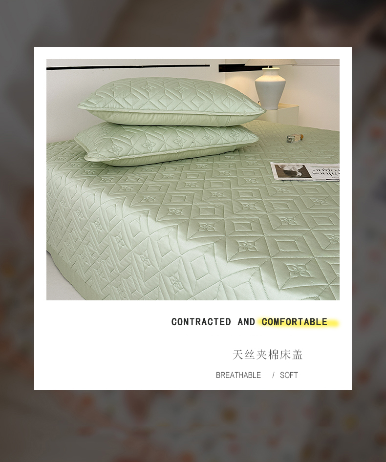 2025新款舒适莱赛尔天丝夹棉床盖 菱格床盖-豆绿