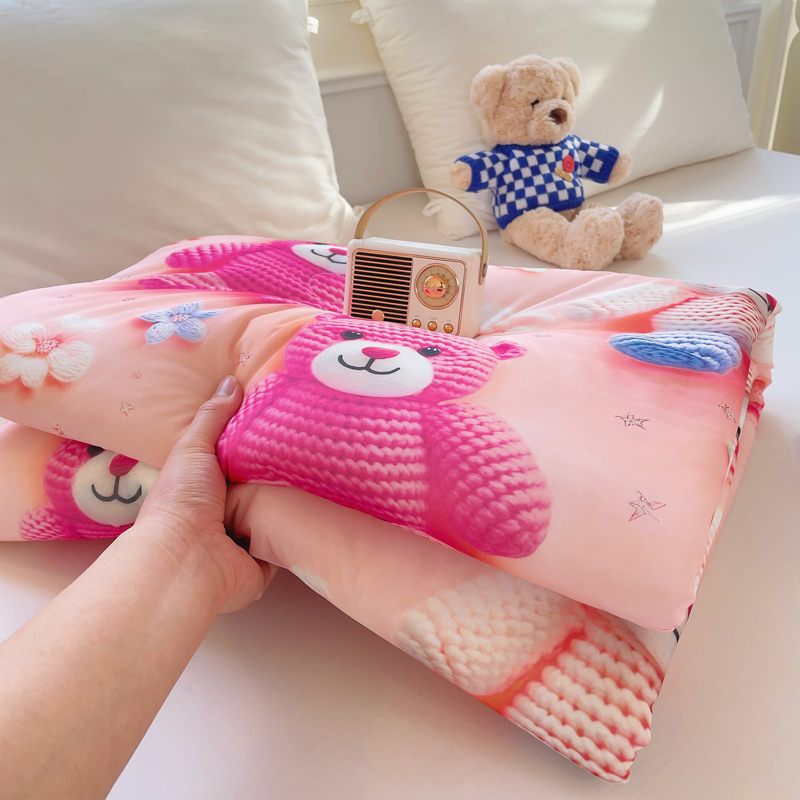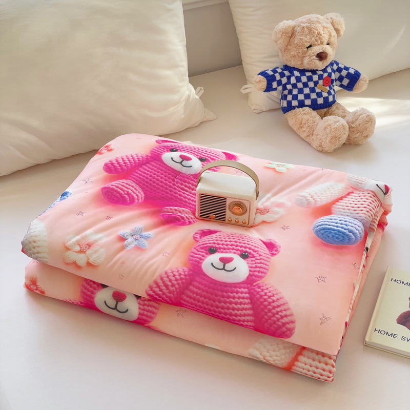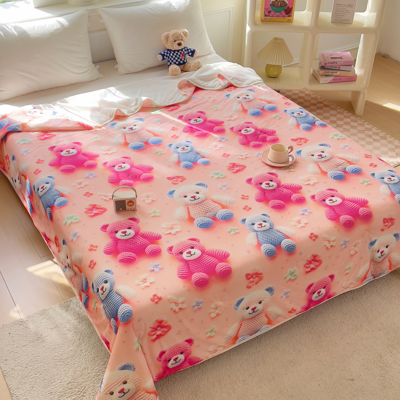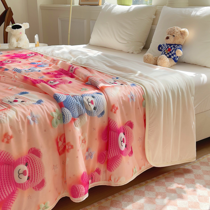蓝冰家纺 2025新款凉感数码印花夏被夏凉被空调被 粉色毛线熊