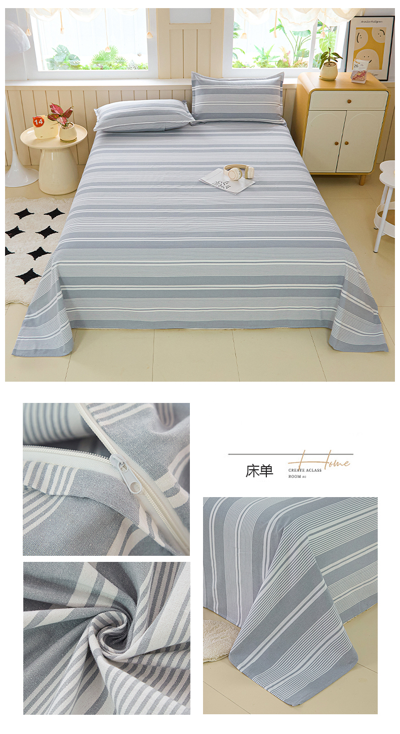 商品名称:金泰莱 2025新款色织老粗布床单老粗布凉席三件套 浅陌