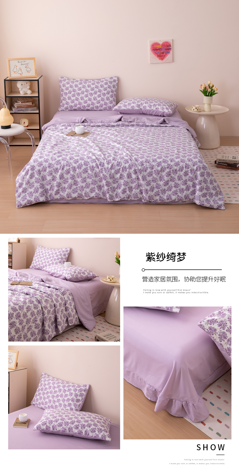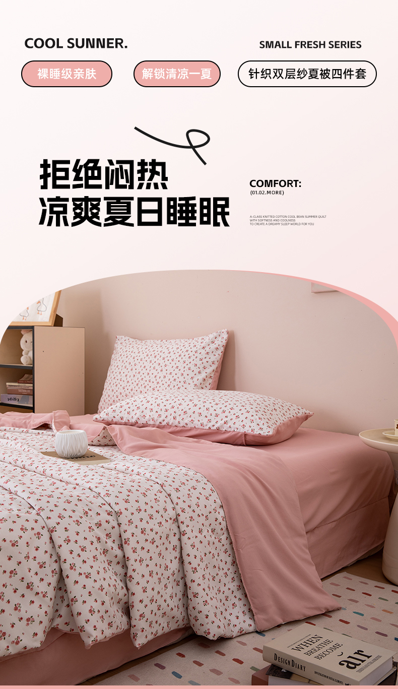 (总)南北家居 2025新款针织棉双层纱夏被四件套,白点小熊,晨露波点,雏菊低语,呆呆熊,芬芳物语,粉色小花,幻紫蝶影,蔷薇轻舞,樱落,钟意,紫纱绮梦