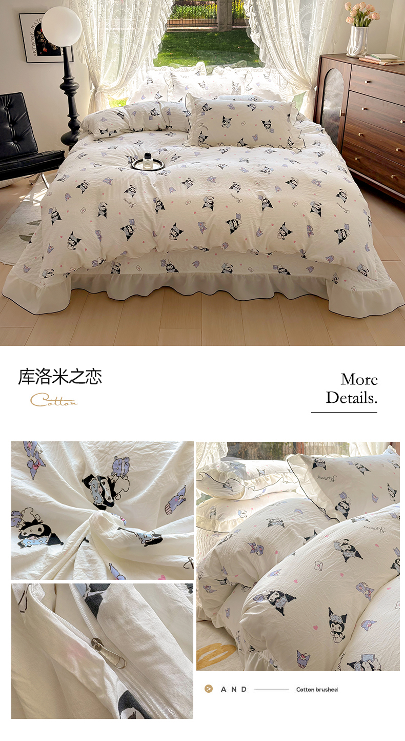 当前位置: 91家纺网 > 商品网购 > 床上用品 > 床盖 > 2025新款水洗棉夹棉床盖四件套韩版蕾丝花边小清新针织棉单被套小碎花皱皱棉直播爆款网红四季跑量款 库洛米之恋