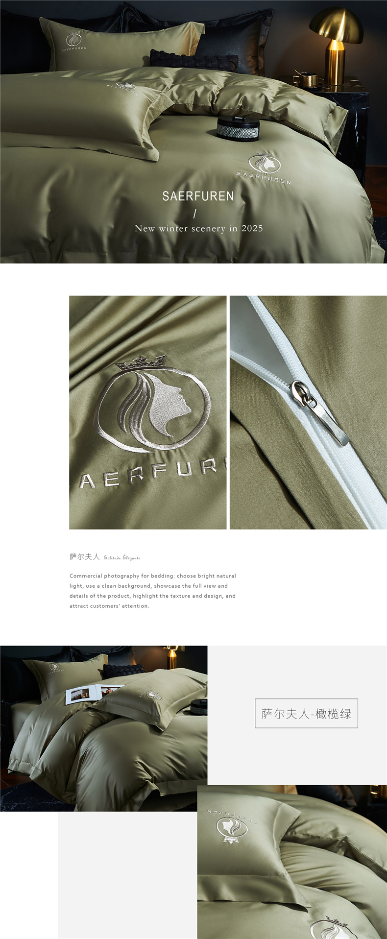 当前位置: 91家纺网 > 商品网购 > 床品套件 > 四件套 > 长绒棉四件套 > 沃尔居 2025新款全棉纯棉长绒棉四件套刺绣绣花纯色贡缎床笠款高端礼盒装 萨尔夫人-橄榄绿