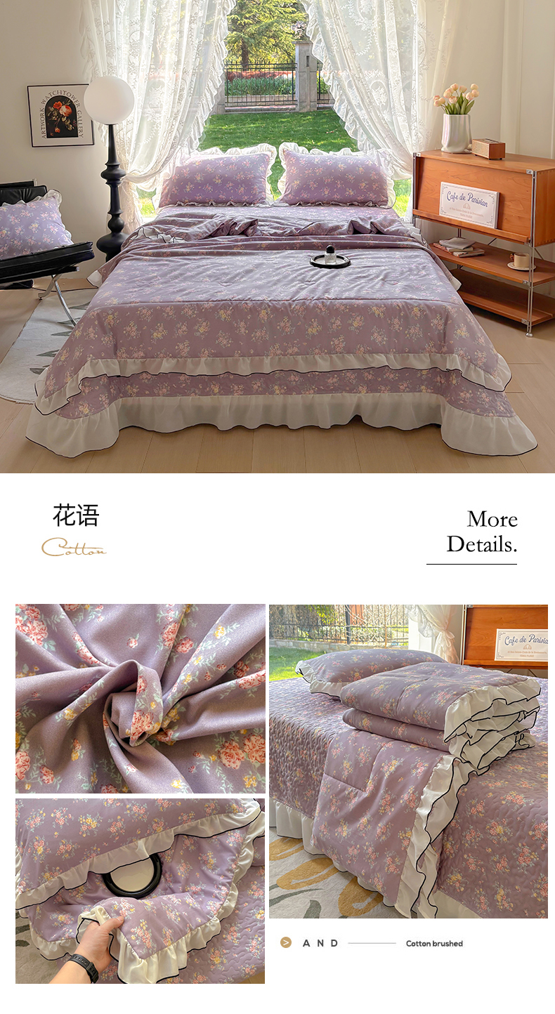 • 91家纺网 家纺一手货源 找家纺 2025新款水洗棉夹棉韩版花边夏被小清新针织棉小碎花皱皱棉双层纱软糯感夏凉被空调被泡泡棉被四季跑量款 花语