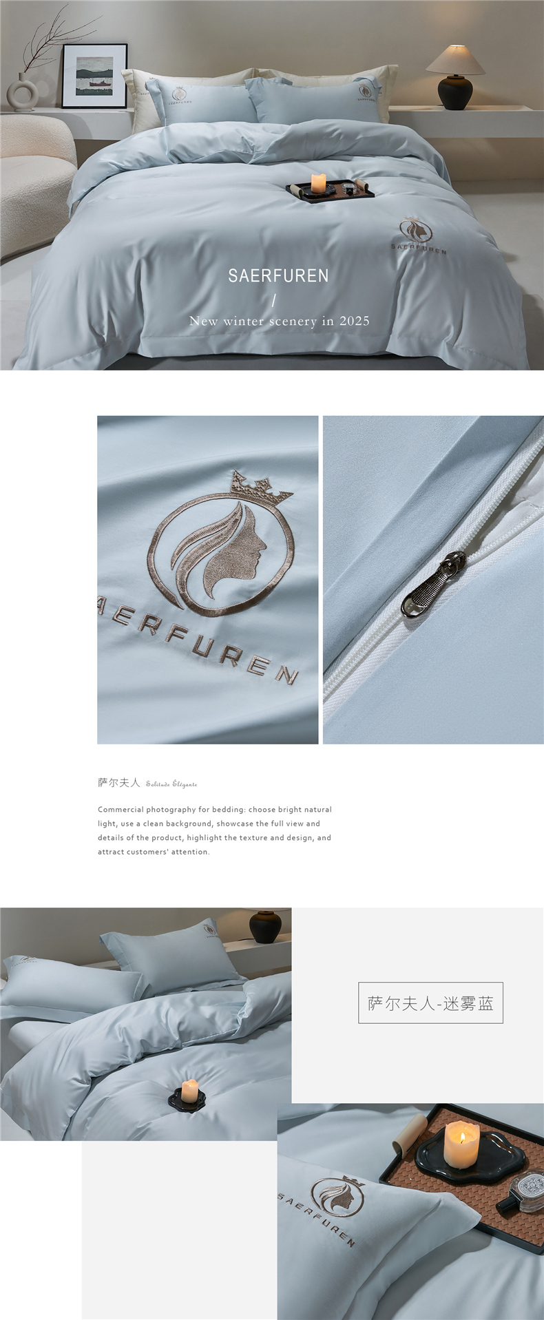 当前位置: 91家纺网 > 商品网购 > 床品套件 > 四件套 > 长绒棉四件套 > 憨豆家纺 2025新款全棉纯棉长绒棉四件套刺绣绣花纯色贡缎床笠款高端礼盒装 萨尔夫人-迷雾蓝