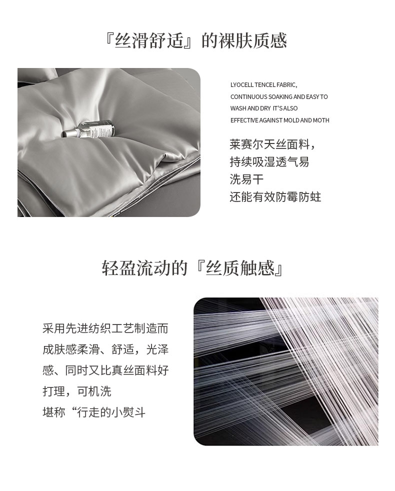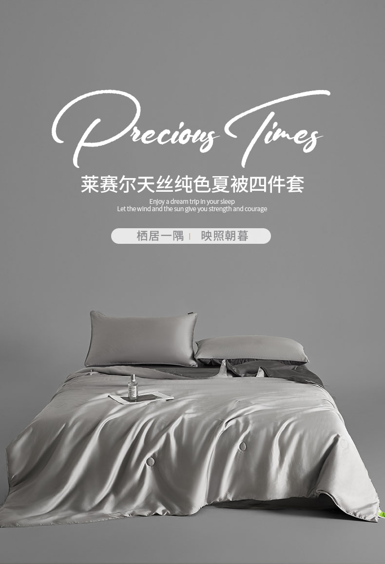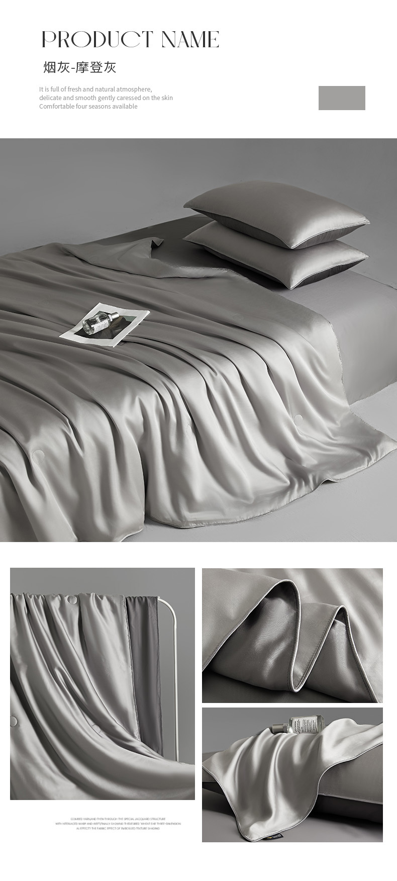 • 91家纺网 家纺一手货源 找家纺 AB家纺2025新品A类莱赛尔双拼50天丝空调夏被四件套 烟灰-摩登灰