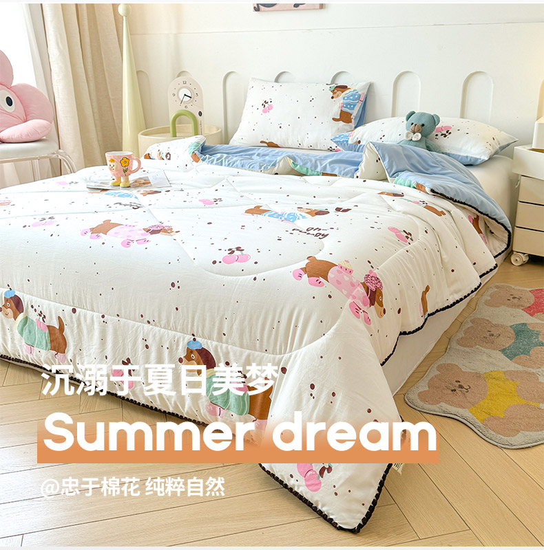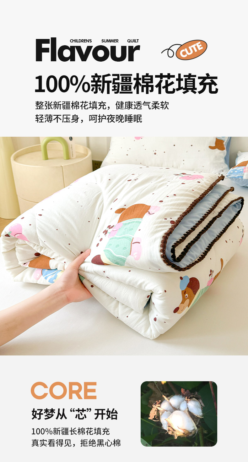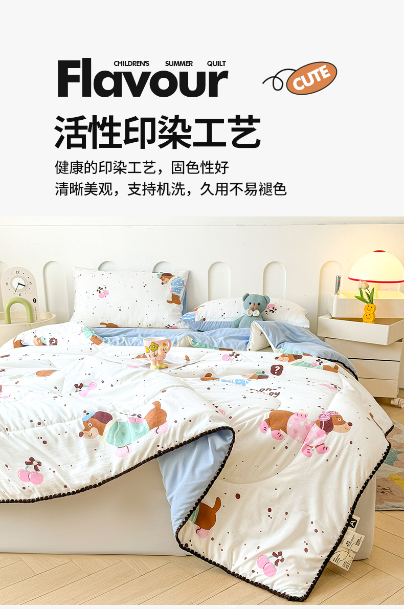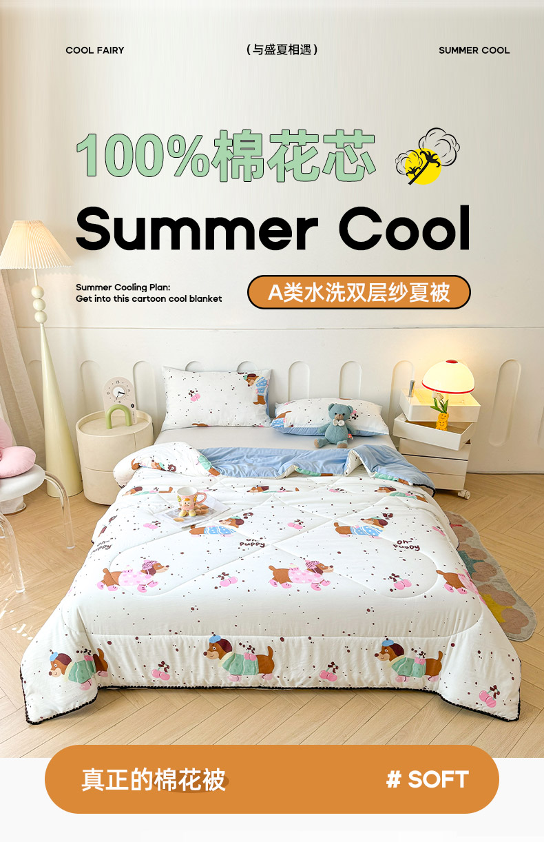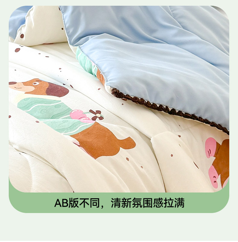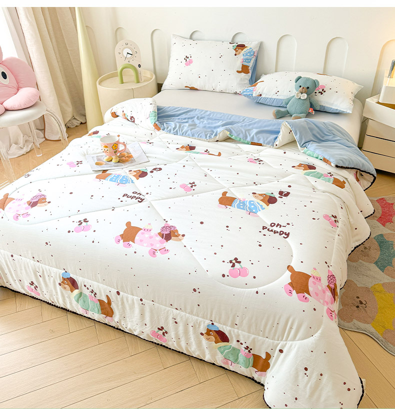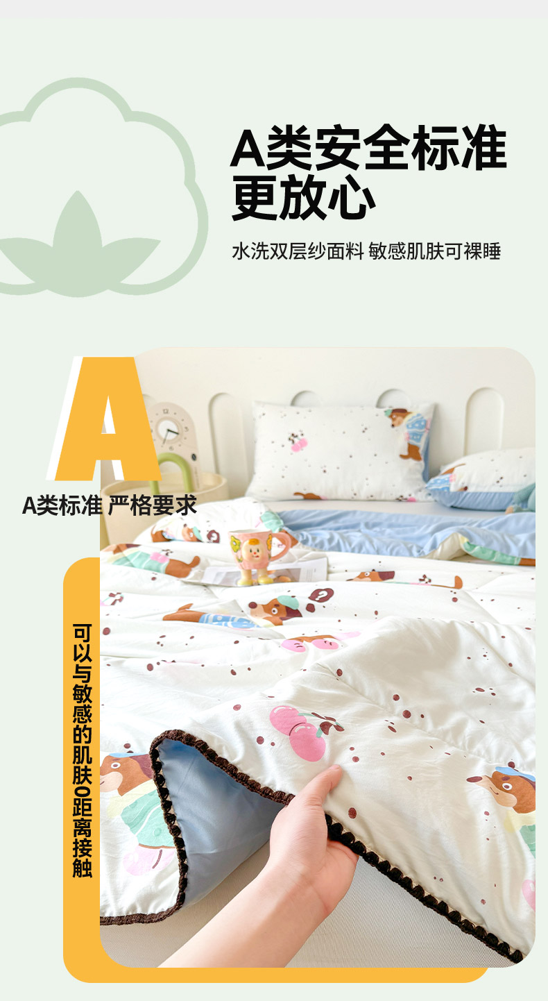 商品名称:熙宴家纺 2025新款A类水洗双层纱100%新疆棉花印花夏被空调被夏凉被 腊肠狗