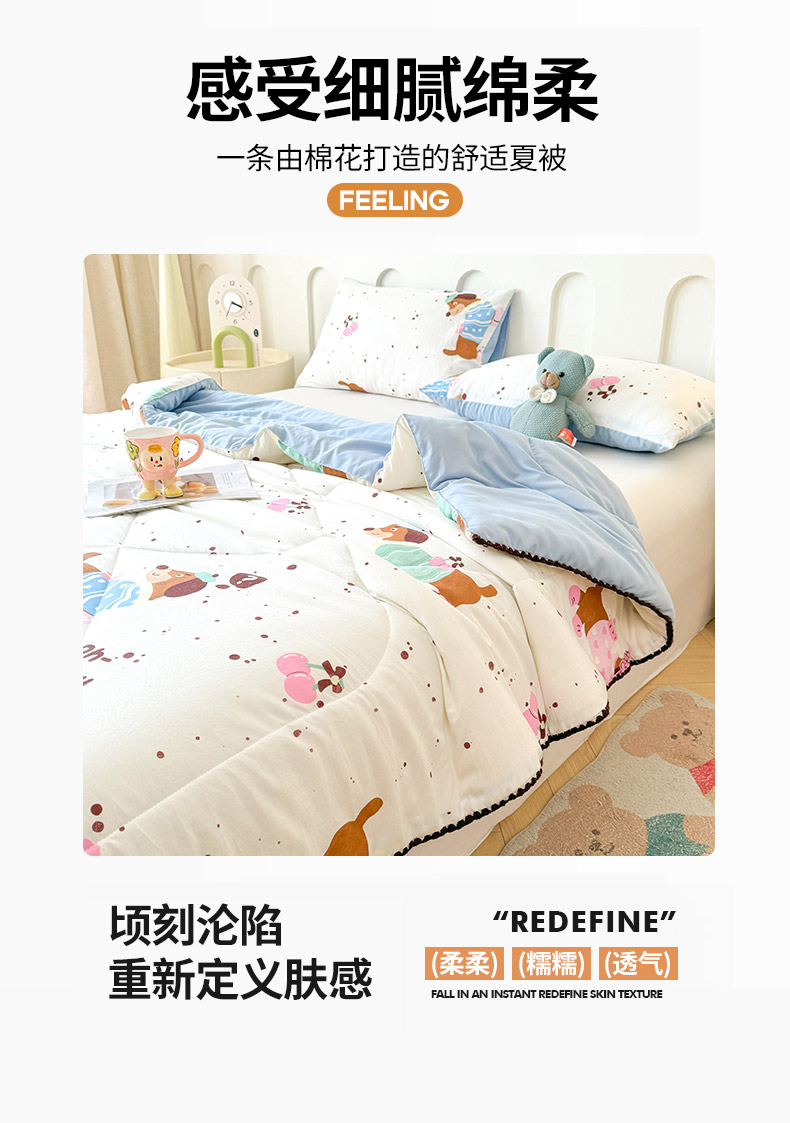 (总)熙宴家纺 2025新款水洗棉100%新疆棉花夏被-棉白,棉白+灰,棉白+蓝,棉白+绿,棉白+玉