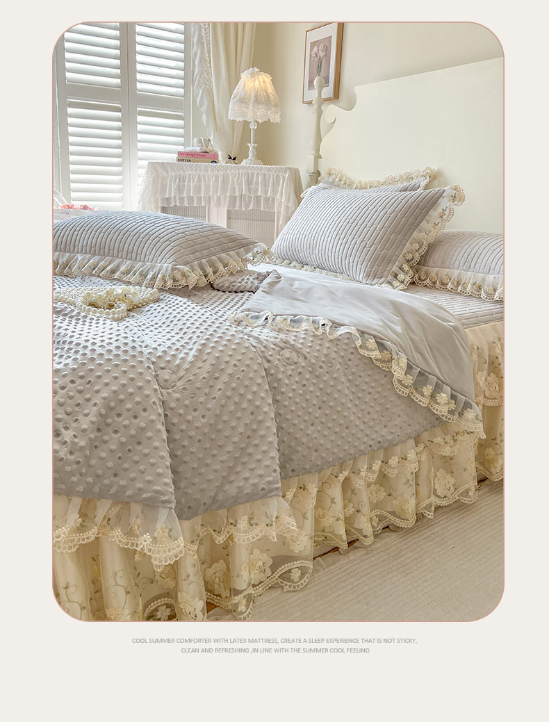 恋尚 2025新款乳胶凉感床笠裙豆豆夏被夏凉被空调被四件套-甜朵【控价270起】 甜朵-浅灰