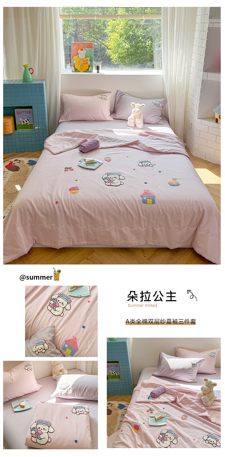 (总)TT.one 塔塔家居 2025新款全棉双层纱贝壳边夏被系列,半夏,草莓酱·蓝,晨露,春和日丽,春日派对,花序,茉香,南岛日记,趣味豆豆,睡睡熊,素予,小樱桃