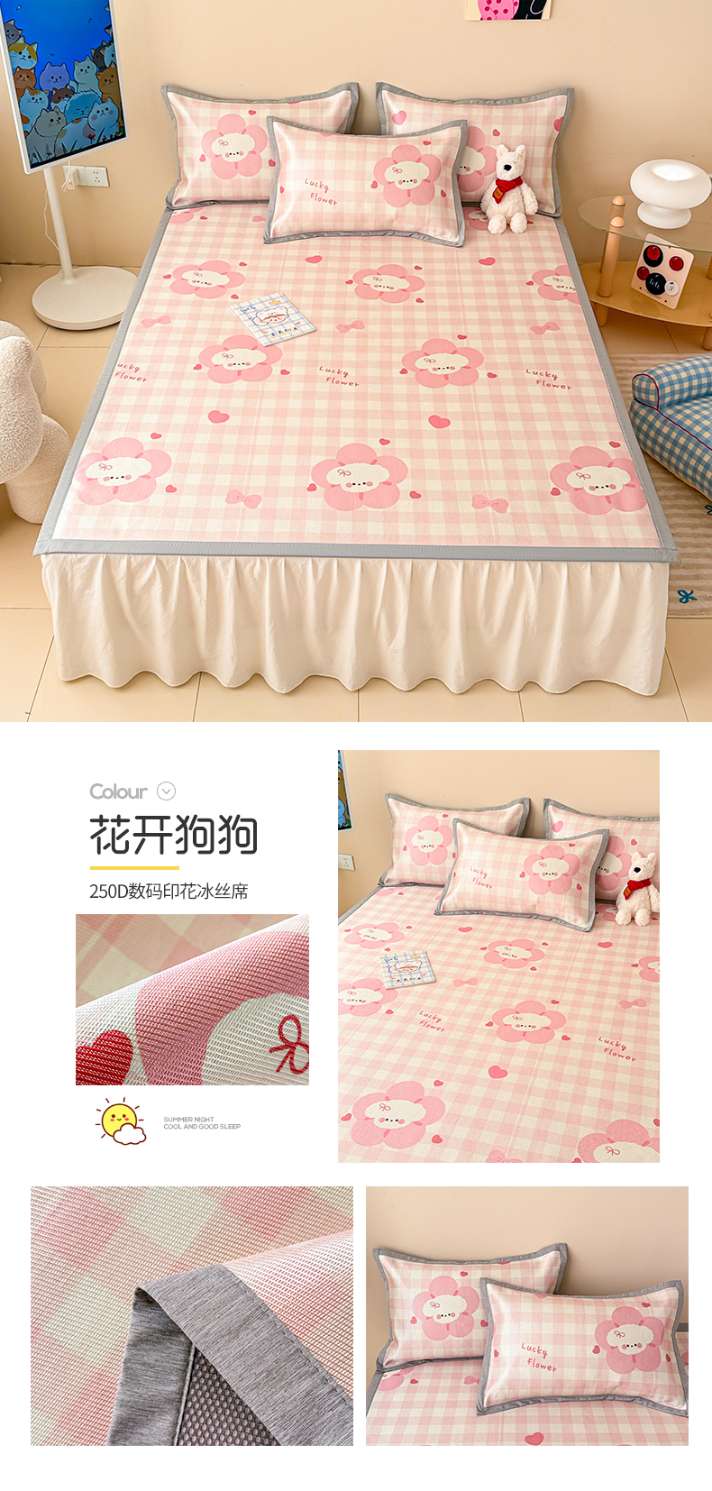 商品名称:典曼家纺 2025春夏新款250D冰丝宽边圆网冰丝凉席席子 花开狗狗