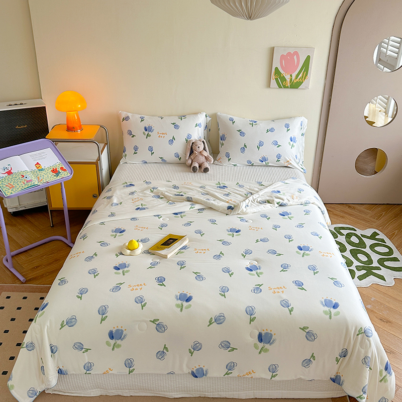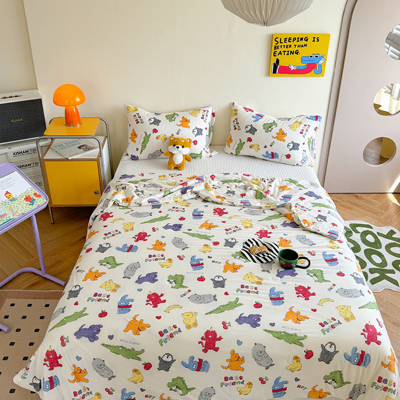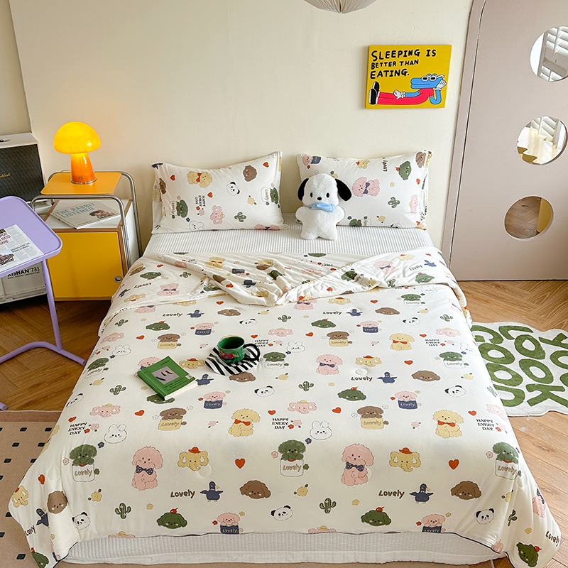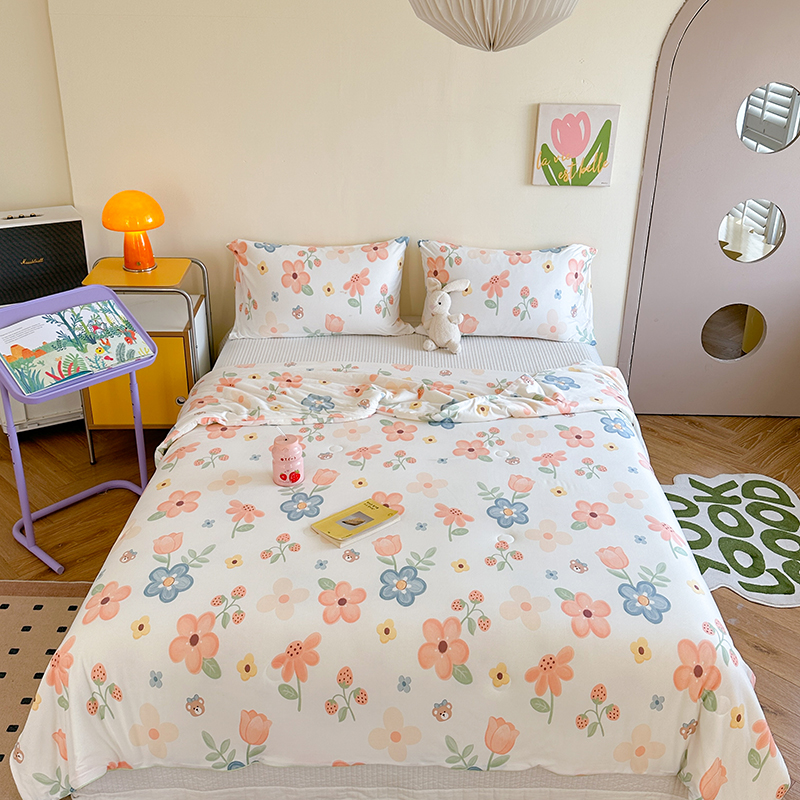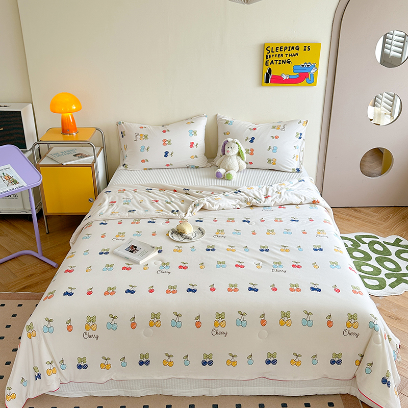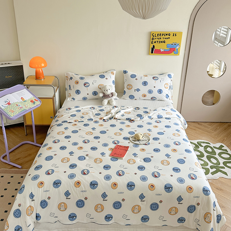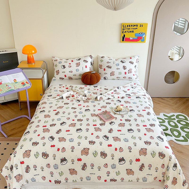 (总)麦伦家居 2025新款双面莫代尔天丝床盖,爱心摩卡,粉色碎花,好梦熊,糯米团子,清雅-蓝,清雅-米,水果熊猫,香岛巴黎,小小樱桃,组合图仅供参考