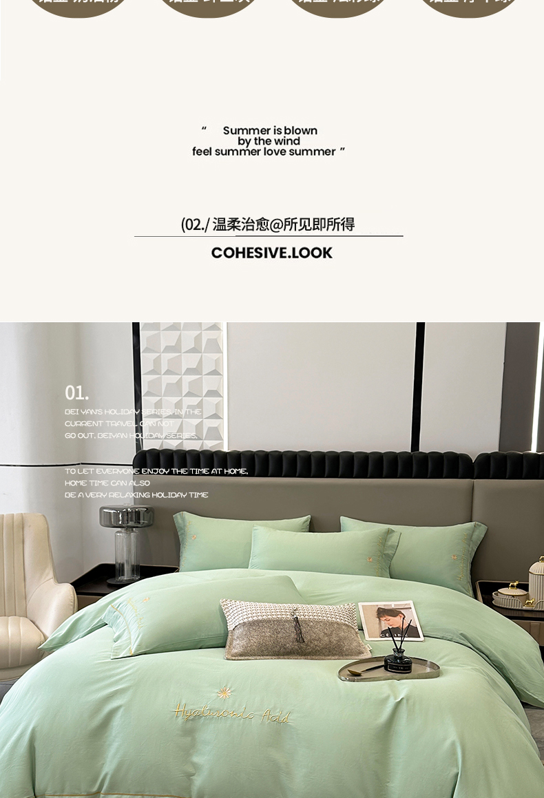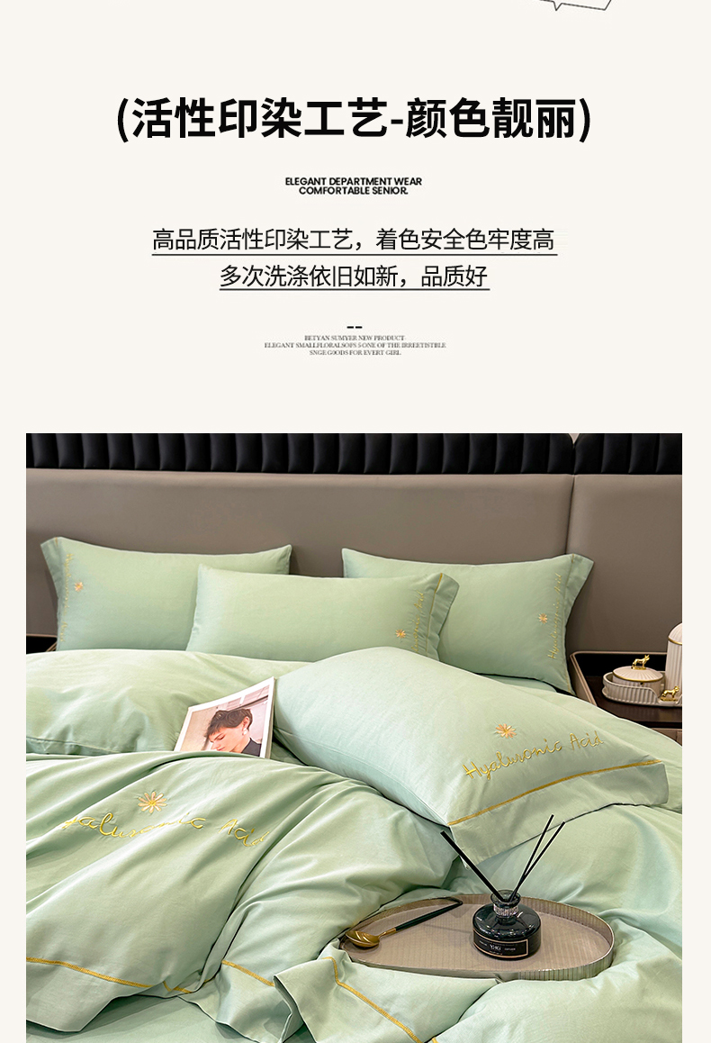 当前位置: 91家纺网 > 商品网购 > 床品套件 > 四件套 > 全棉普通四件套 > 宇彬家纺 2025直播新款13374全棉纯棉母婴级压线一字绣纯色刺绣四件套全棉纯棉贡缎新疆长绒字母款铂金系列 铂金 炫彩绿