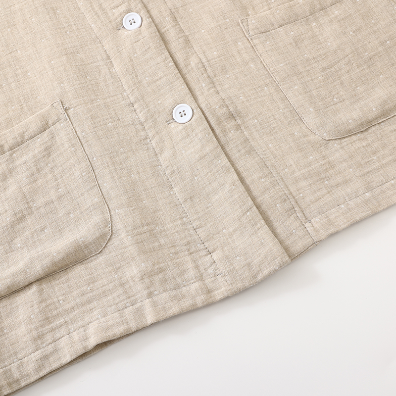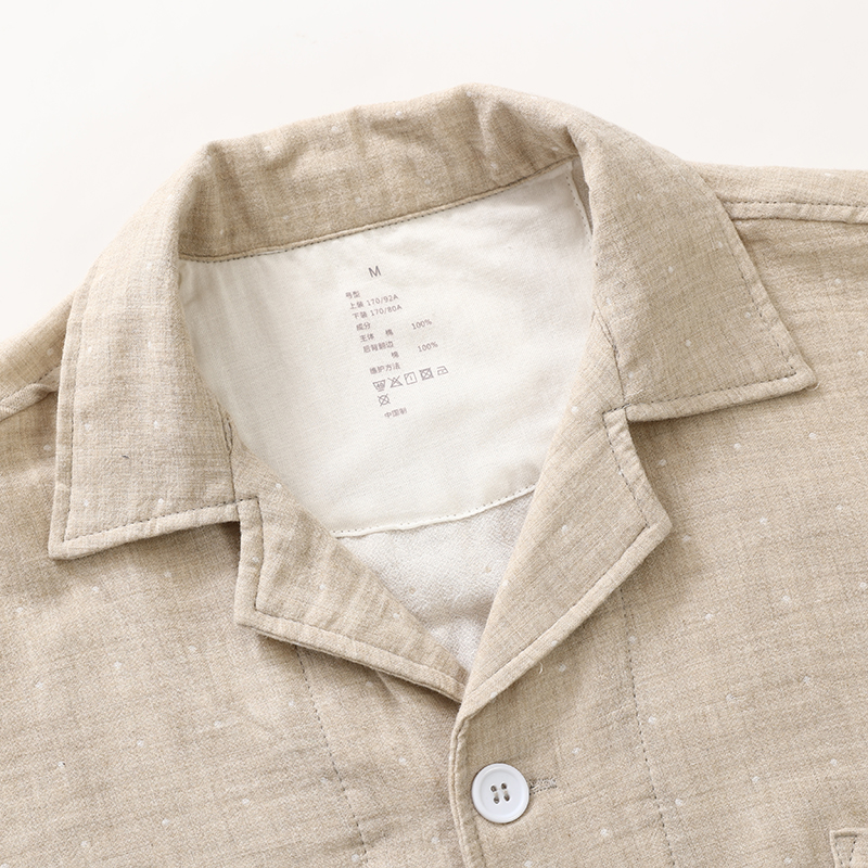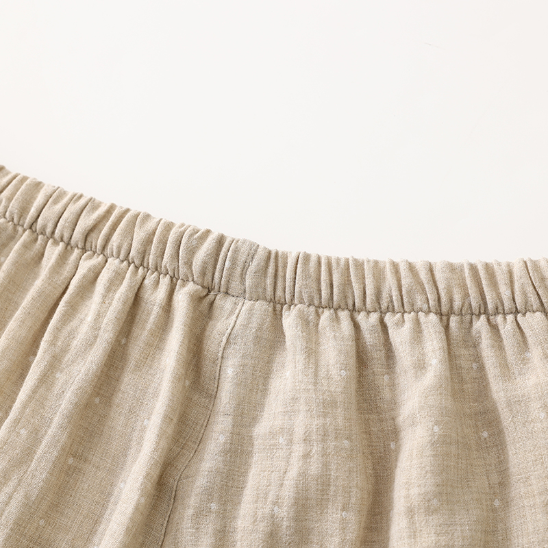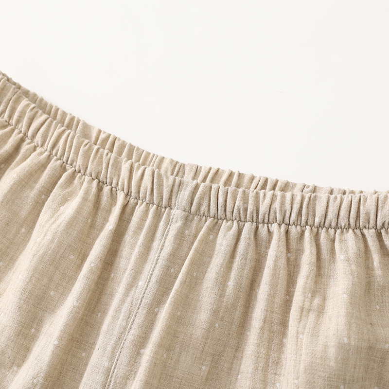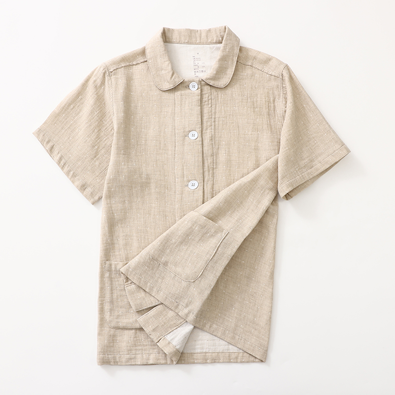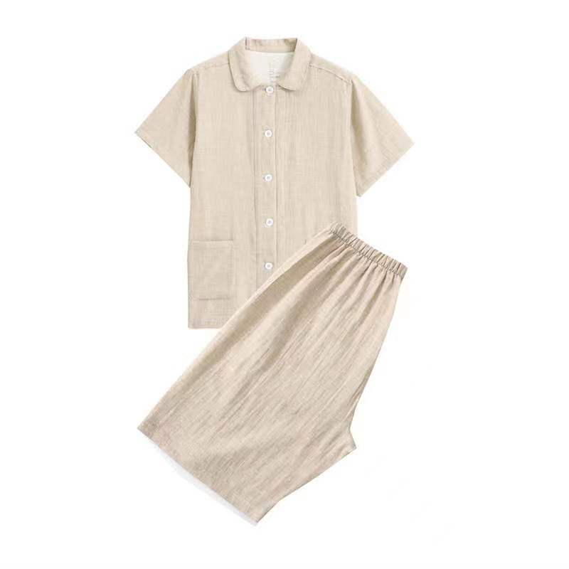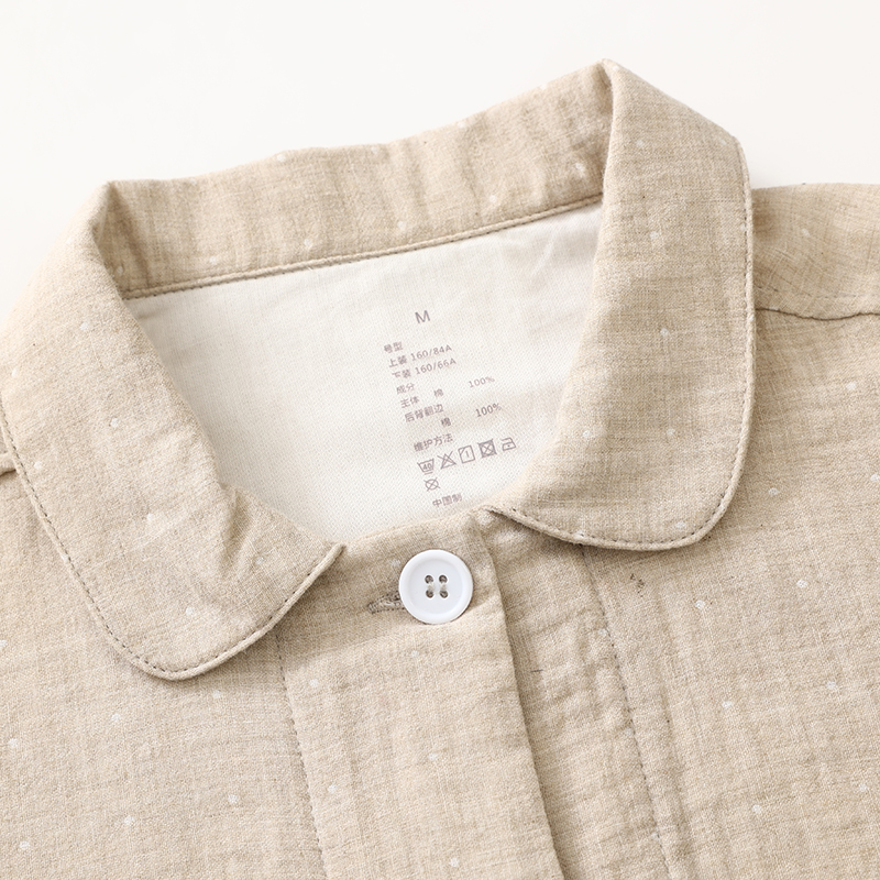 商品名称:伊嫚家居 2025新款日式无印风良品全棉双层纱睡衣女纯棉短袖短裤睡衣夏季纯棉短袖家居服 米色波点女